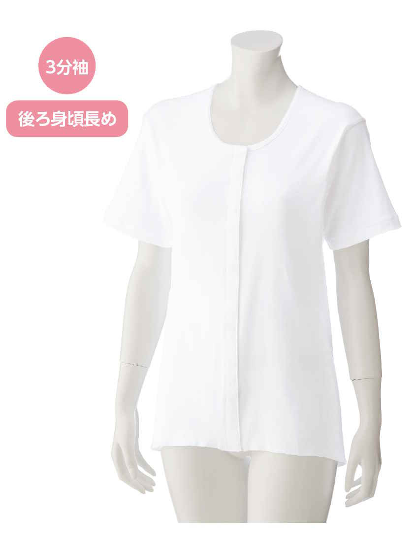 【前開き】【秋冬】エクストラストレッチ長袖ホックインナー/婦人用/レディース/高齢者/シニア/着やすい/脱ぎやすい/肌着【CF】