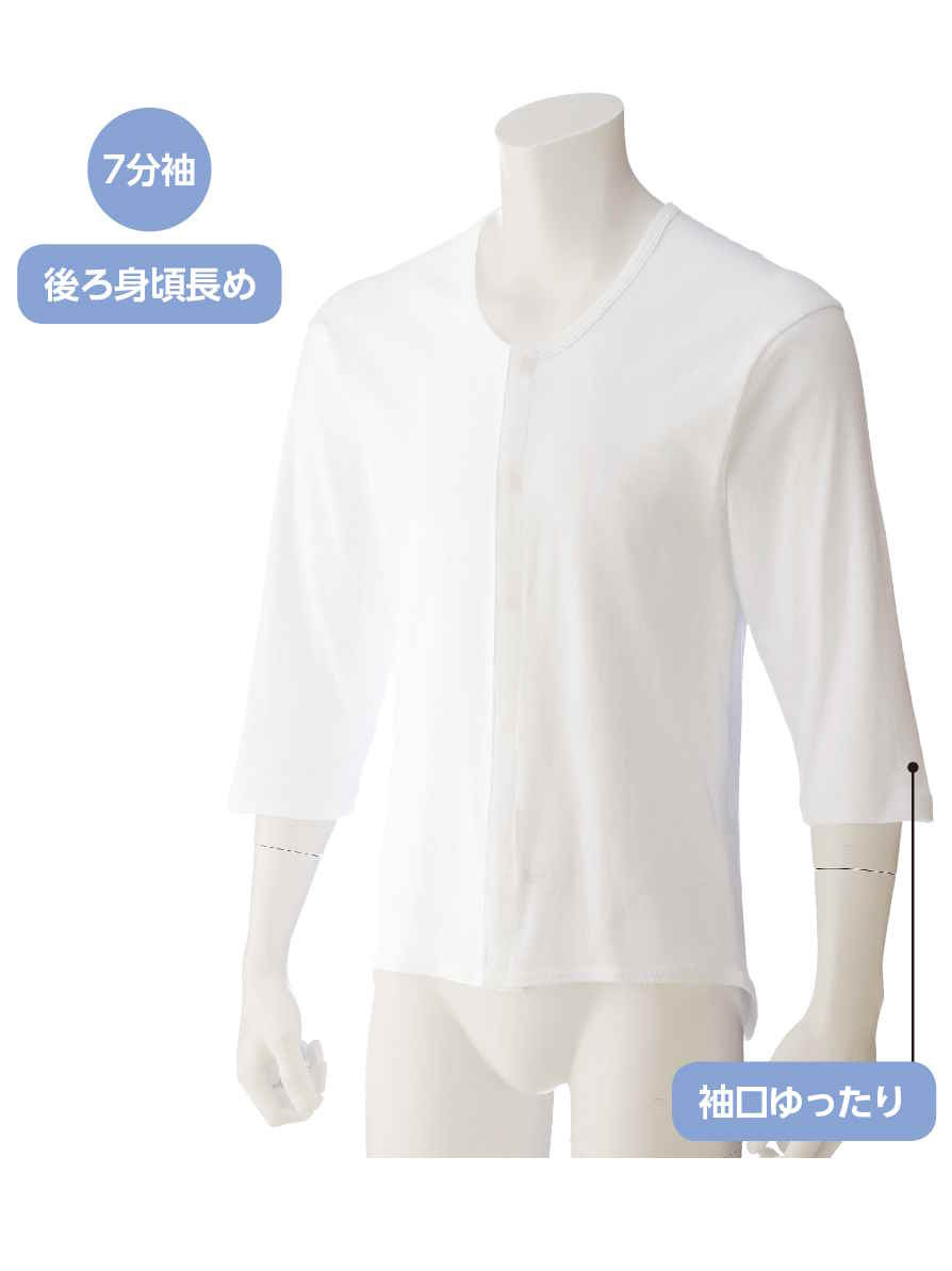 【前開き】【あったか】起毛ワンタッチテープシャツ2/紳士用/メンズ/高齢者/シニア/秋冬/名前記入欄付/施設/入居/後ろ長め/ギフト/プレゼント【CF】