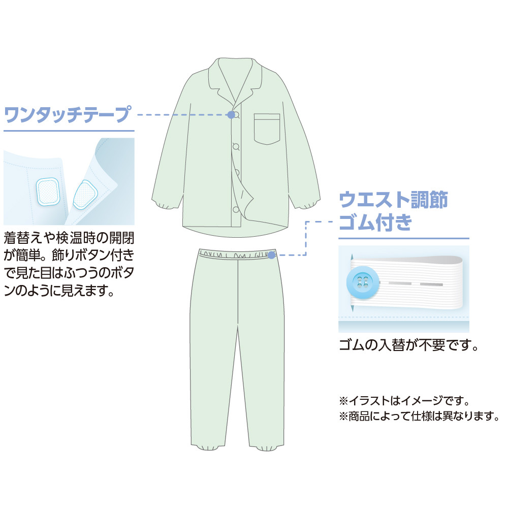 着替えや検温時の開閉が簡単。飾りボタン付です。