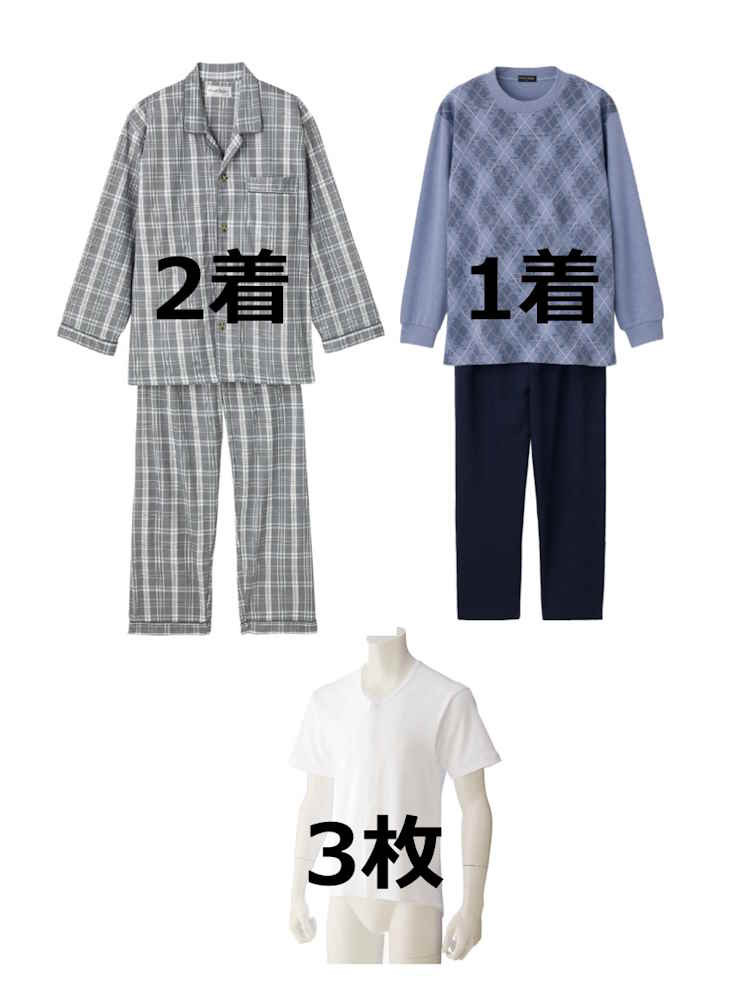 メンズ シニア安心おまとめセット6点セット(Lサイズ)F/高齢者/シニア/入居/入所/介護/生活用品/前開き/施設入居/老人ホーム【CF】