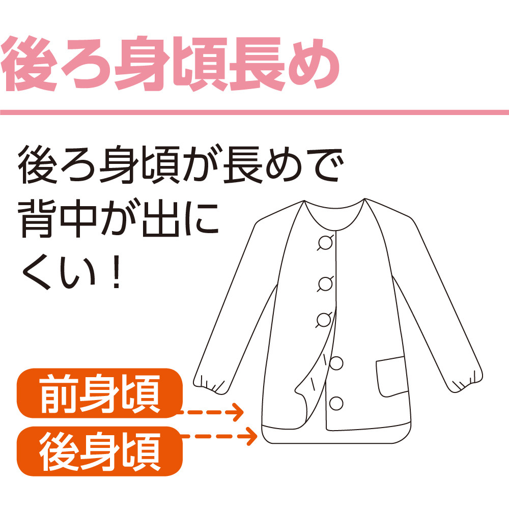 後ろ身頃が長くなっているので、かがんでも背中が出にくくなっています。