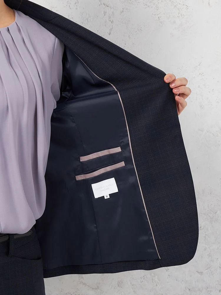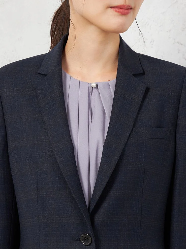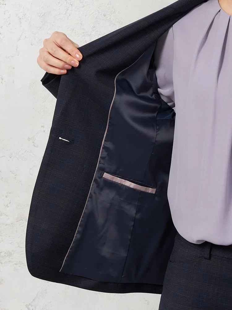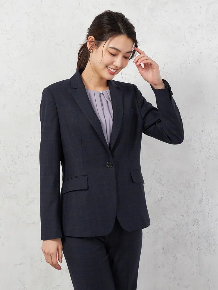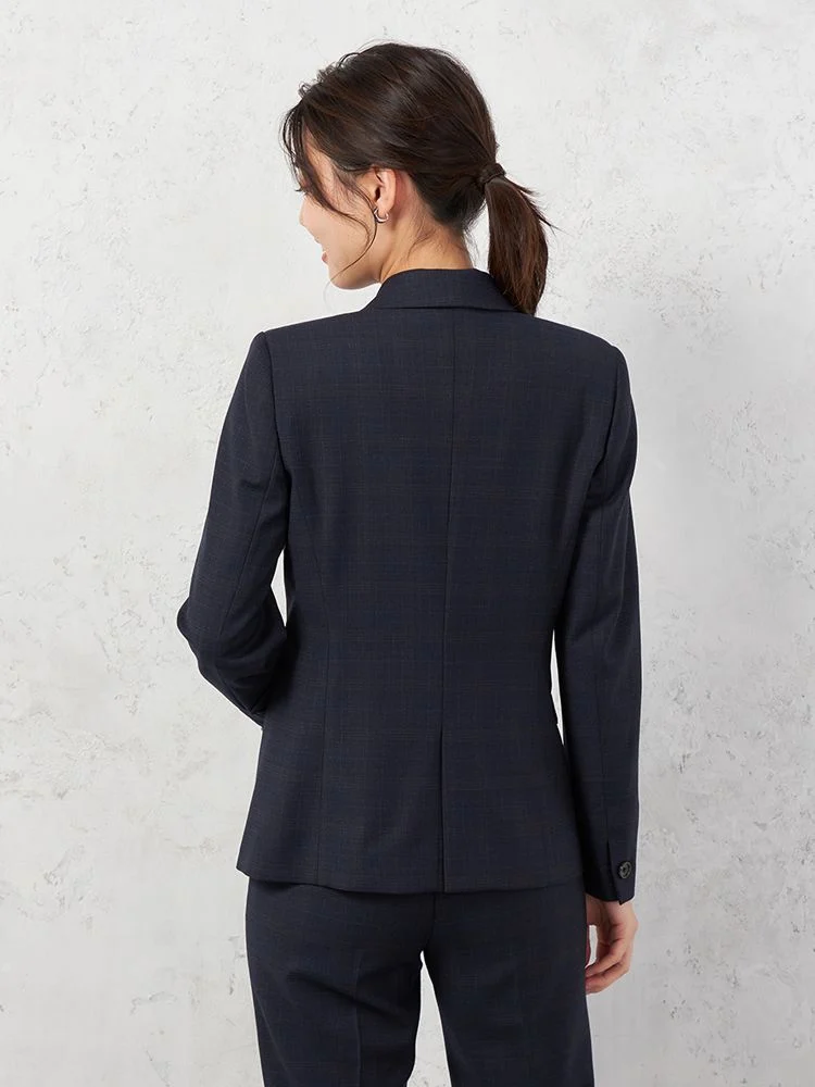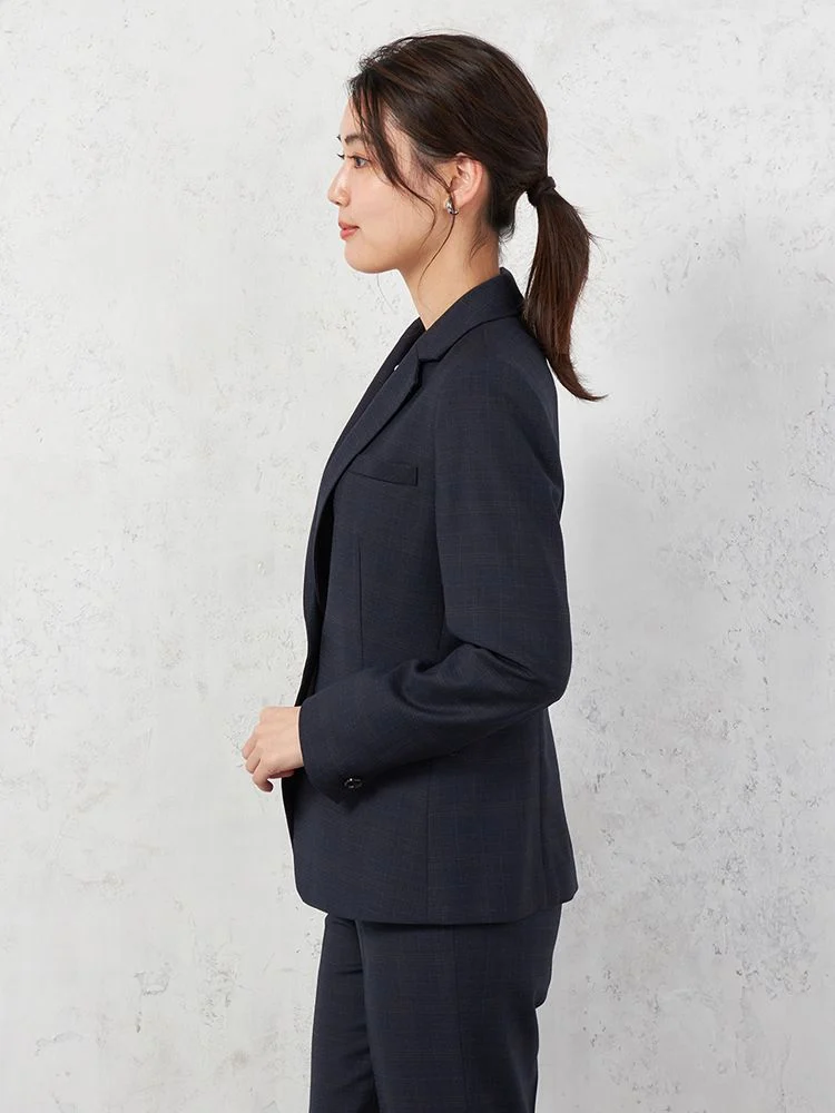 【働ラク肩ラクスーツ】ジャケット1つボタンウォッシャブルストレッチネイビーチェックS&MWHITE秋冬【レディース】
