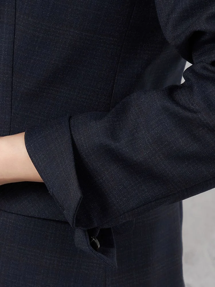 切り込みが1本のセンターベントデザインです。細身でスッキリとしたシルエットが特徴で、快適な着心地を提供します