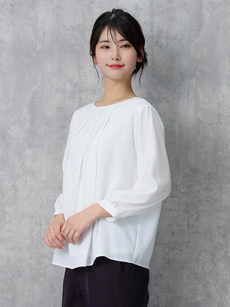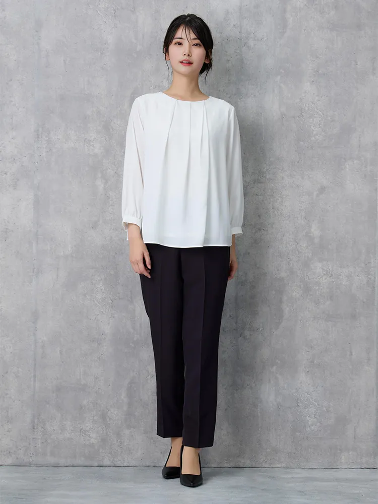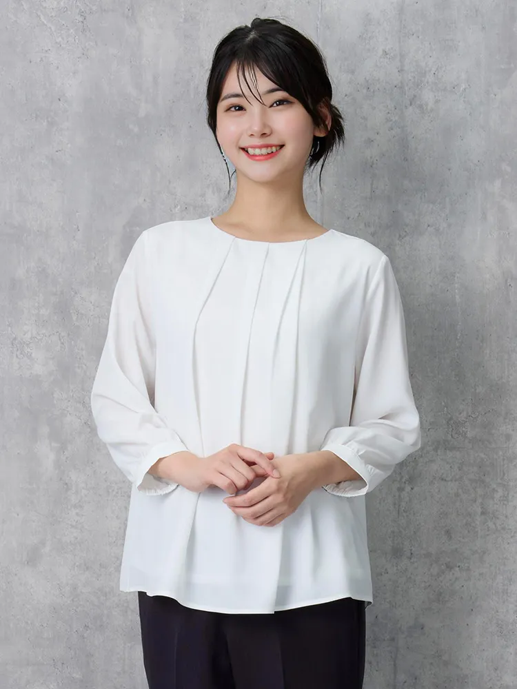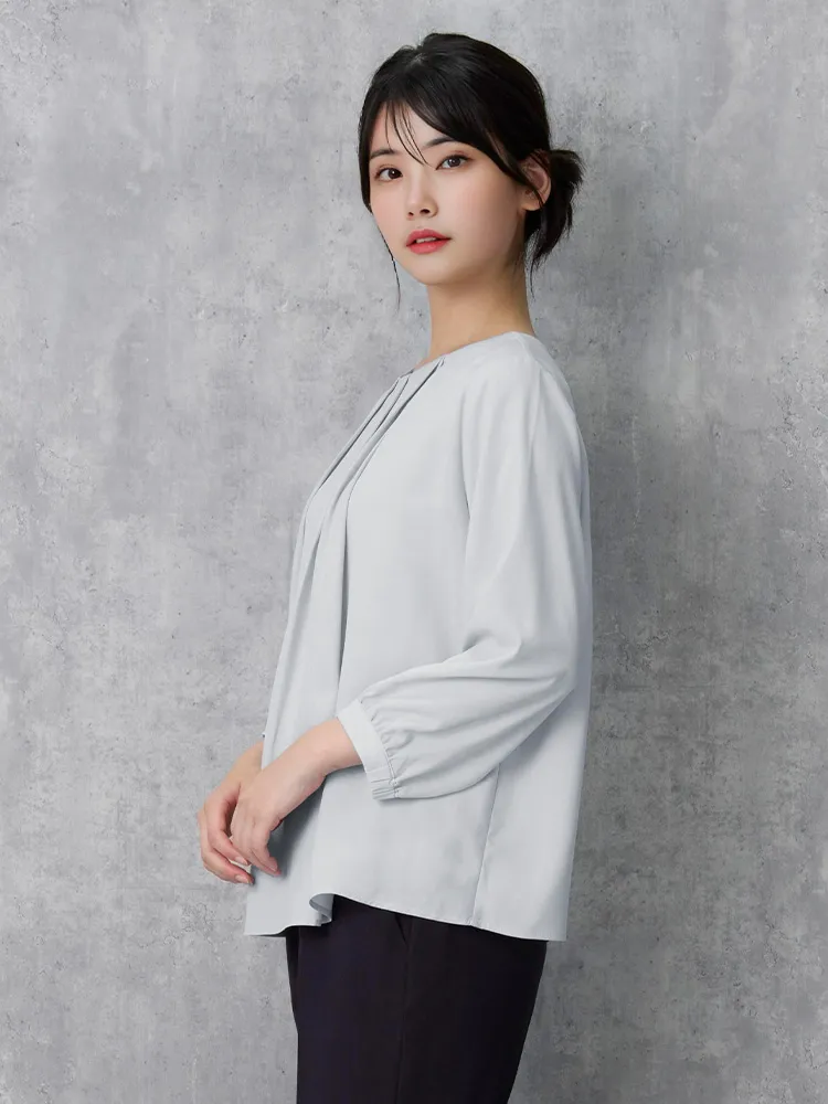 フロントタックディティールが上品な印象の7分袖ブラウス。