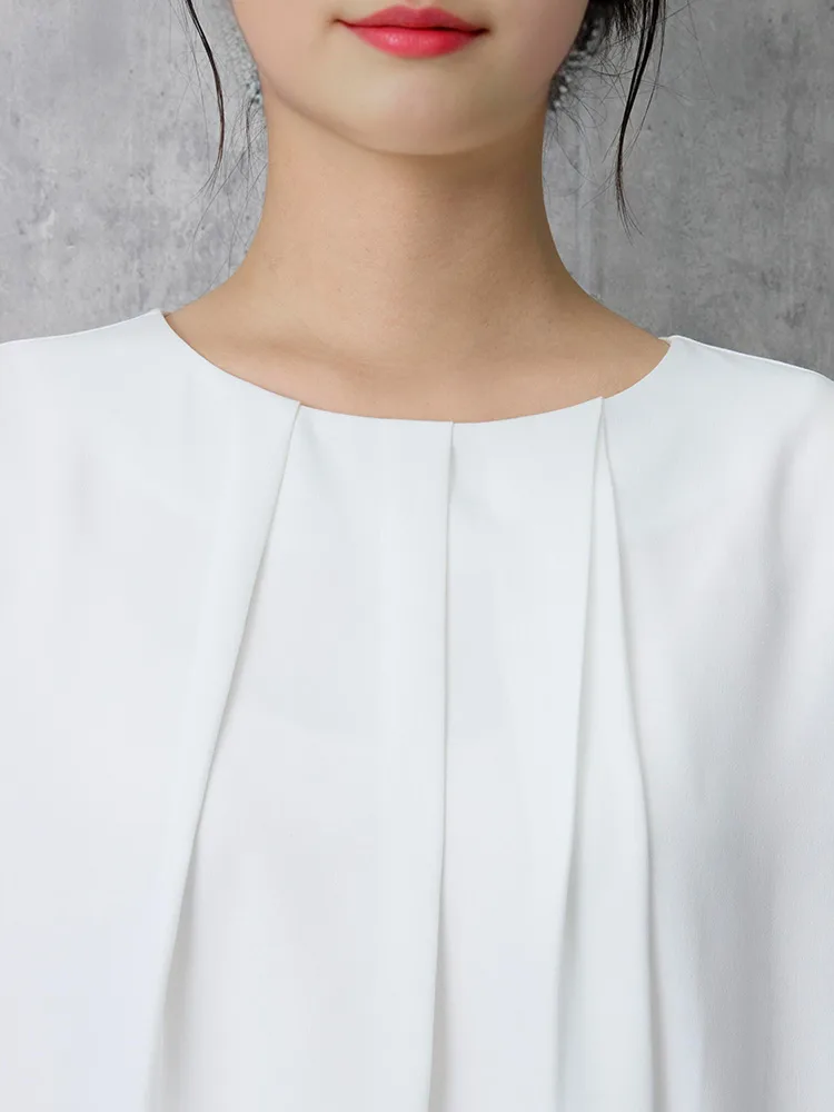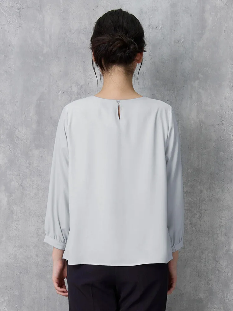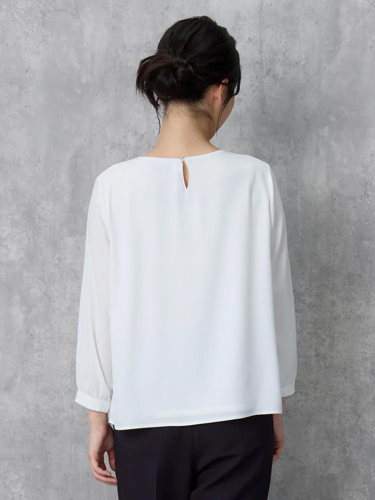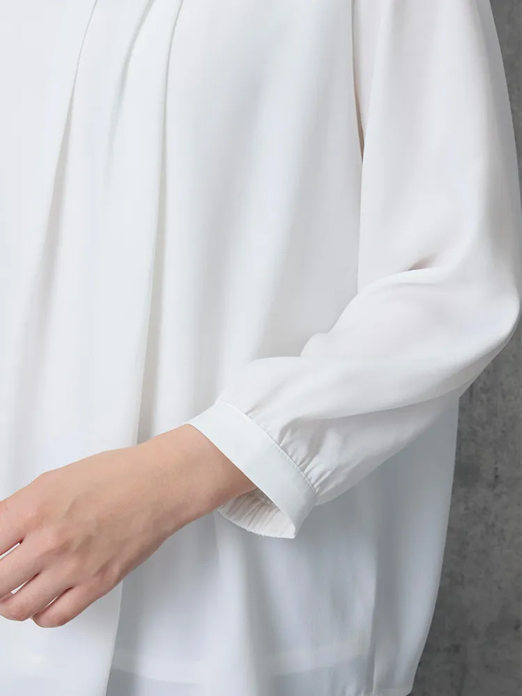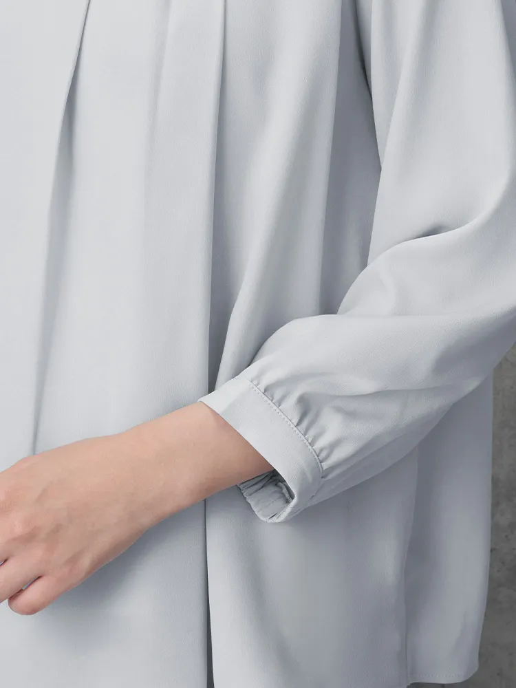 フロントタックディティールが上品な印象の7分袖ブラウス。