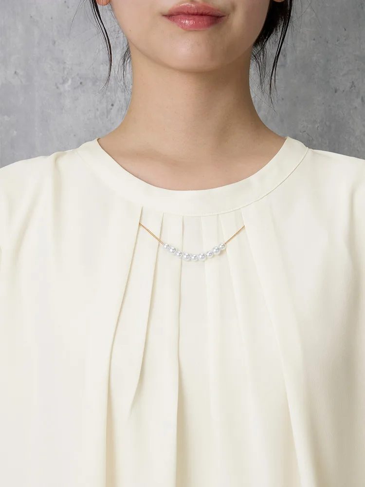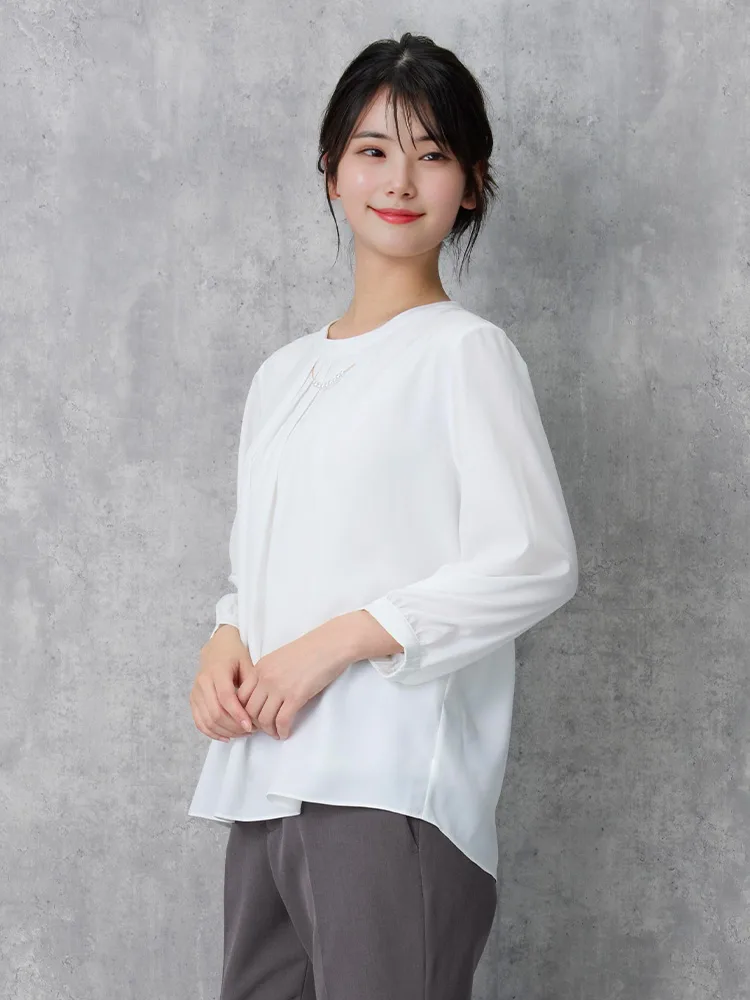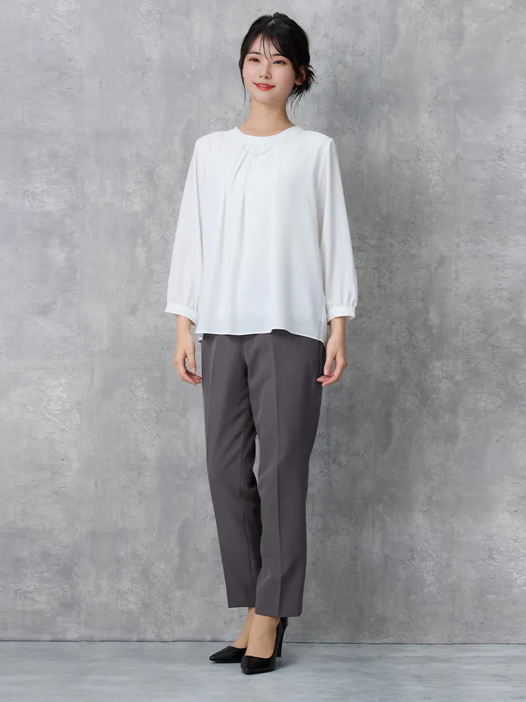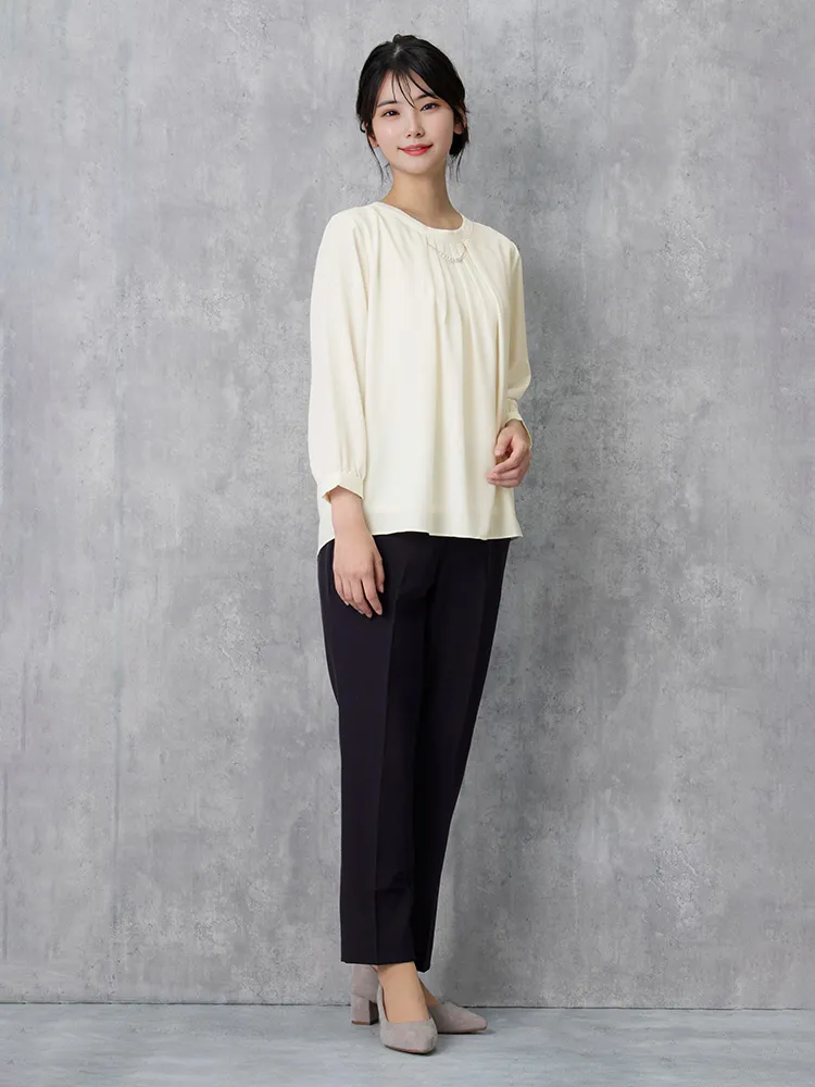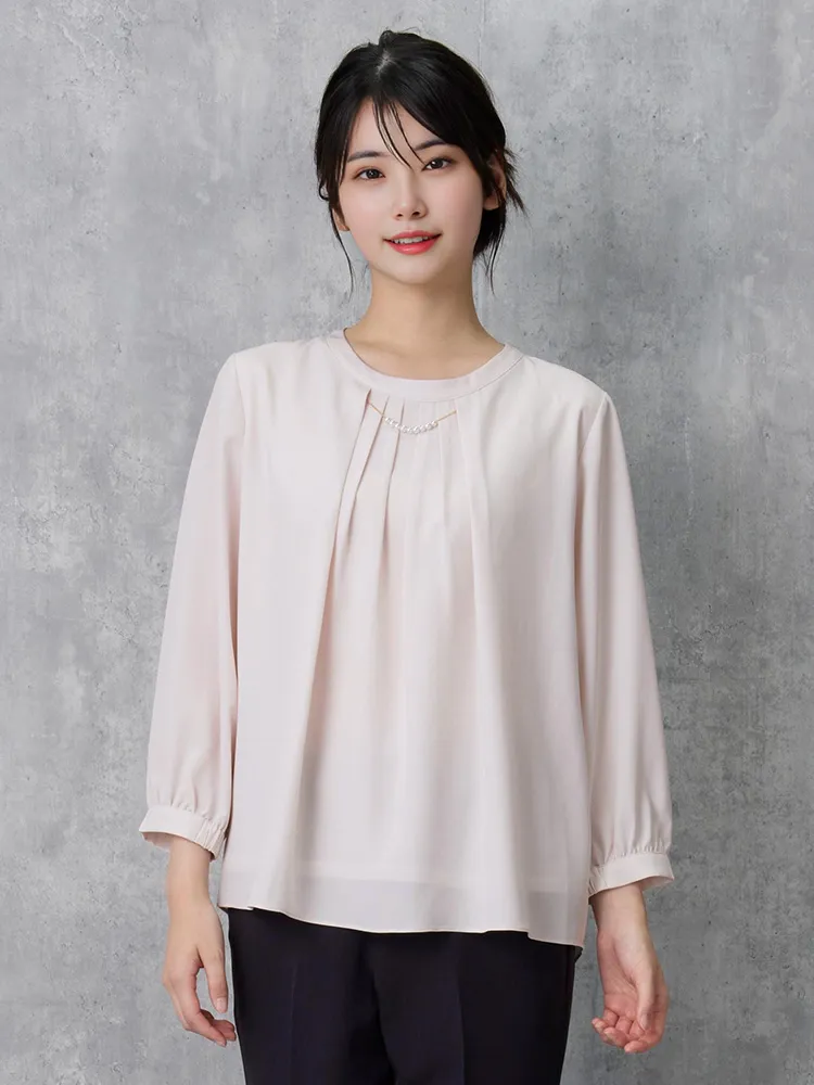 エレガントなデザインとカラーで幅広いシーンで活躍できる7分袖ブラウス。