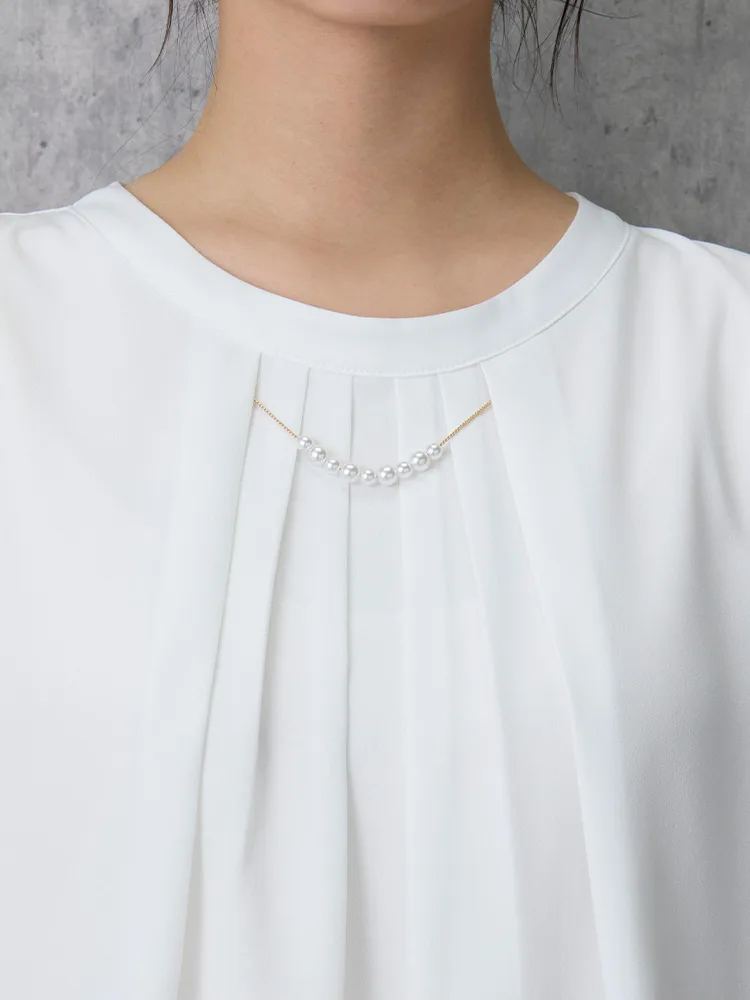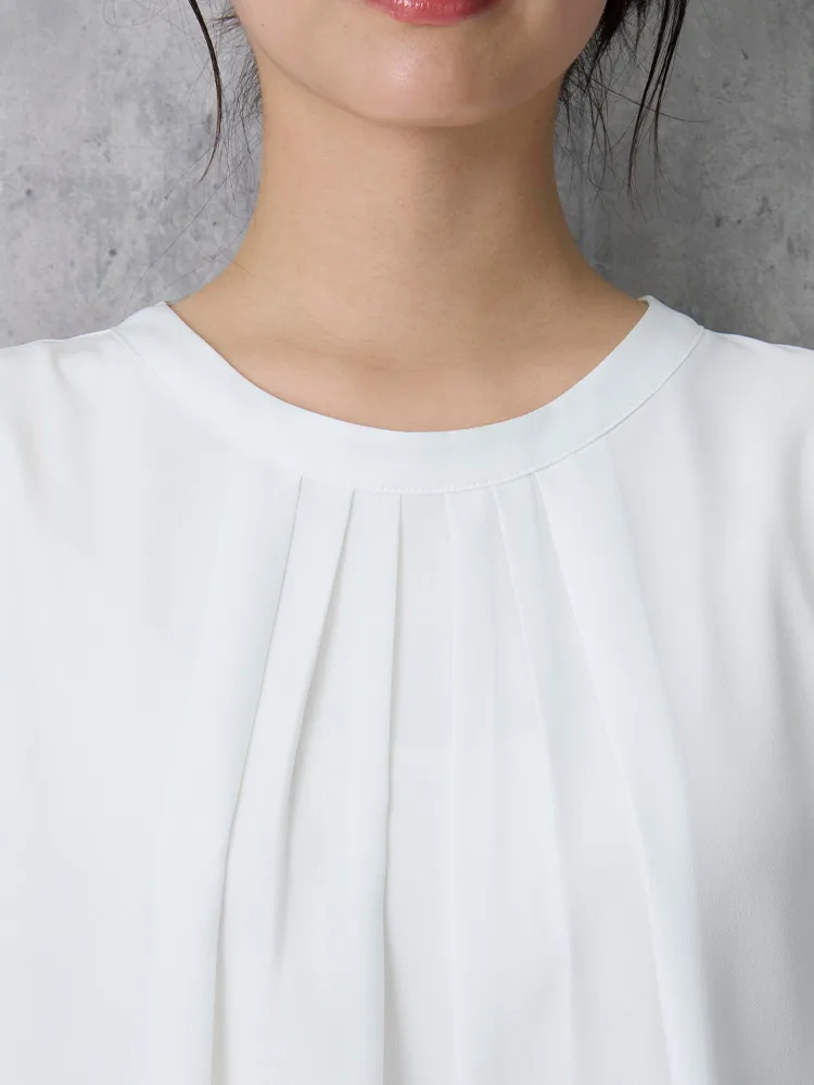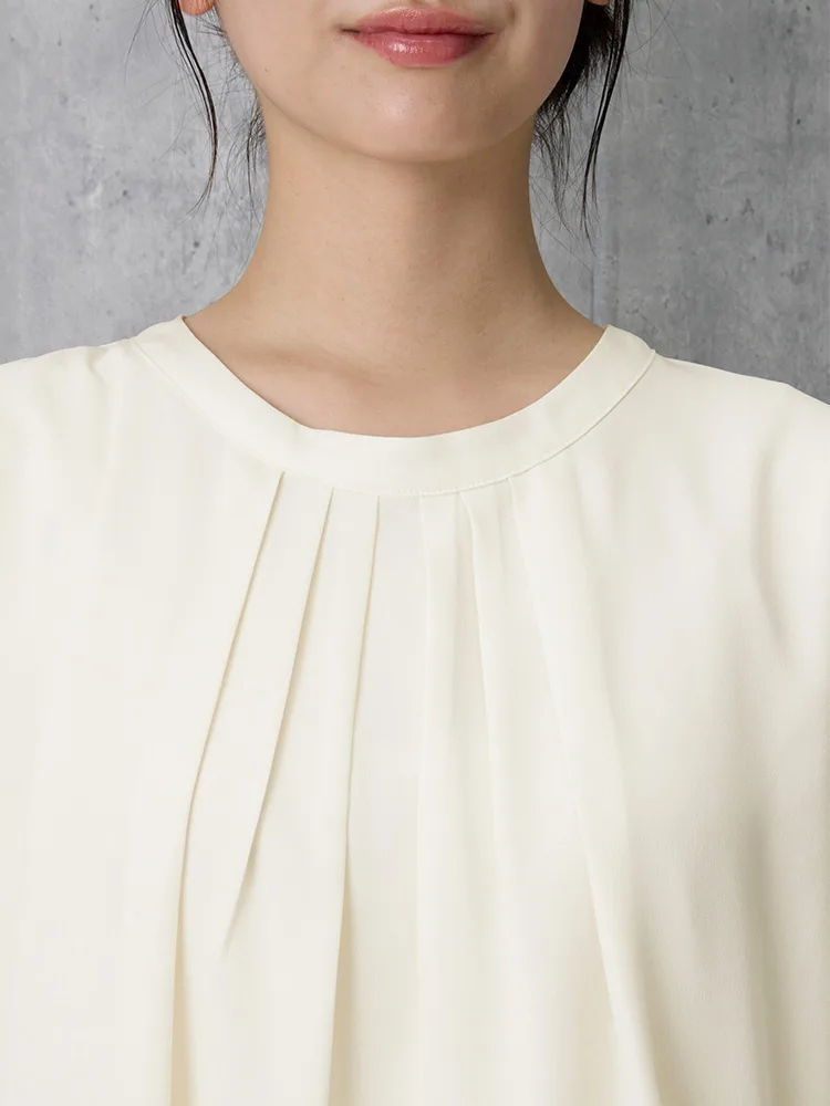 【ウォッシャブル】7分袖袖プリーツブラウスUVカット透けにくい2枚仕立て無地SOFFICE春夏【レディース】