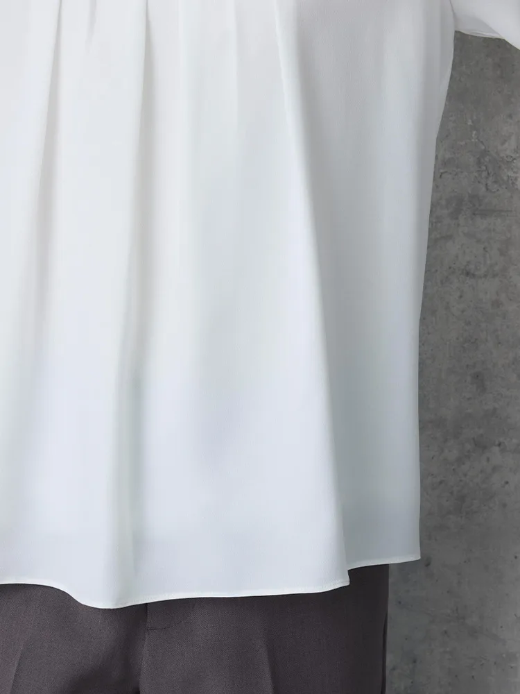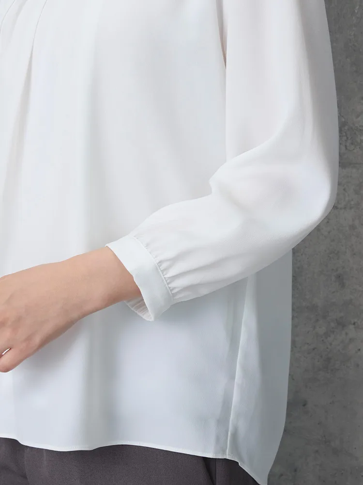 袖口のゴムギャザーはブラウジングなど袖丈調整が自在、ジャケットインでも袖が引っ掛かりにくくストレスフリーな着用感。