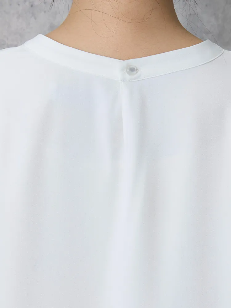 身頃が2枚重ねなので、1枚で着用しても下着が透けにくく安心して着用いただけます。