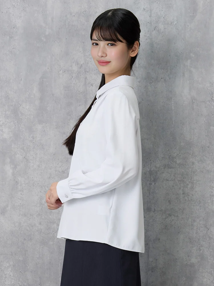 【2WAYリボン付】長袖 ブラウス レギュラーカラー ストレッチ 透けにくい 無地 ViVi 通年【レディース】(ホワイト)