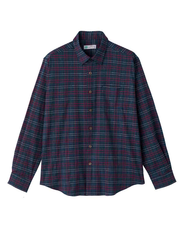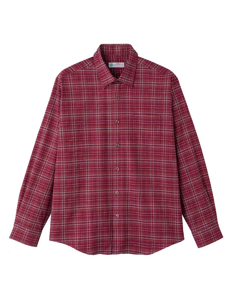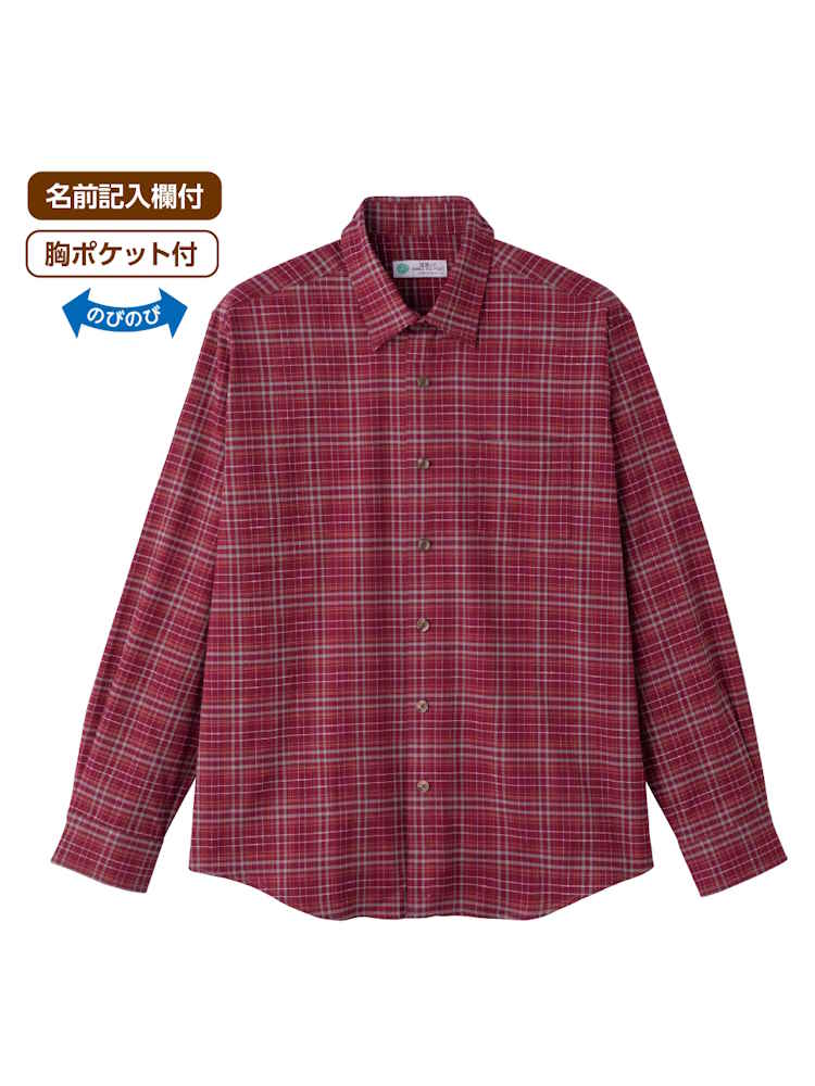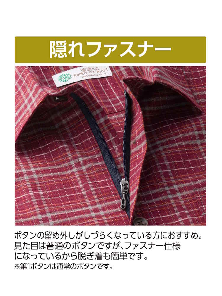 【前開き】【秋冬】綿混隠れファスナーシャツ/紳士用/メンズ/高齢者/シニア/のびのび/あったか/名前記入欄付 【CF】(ワイン)