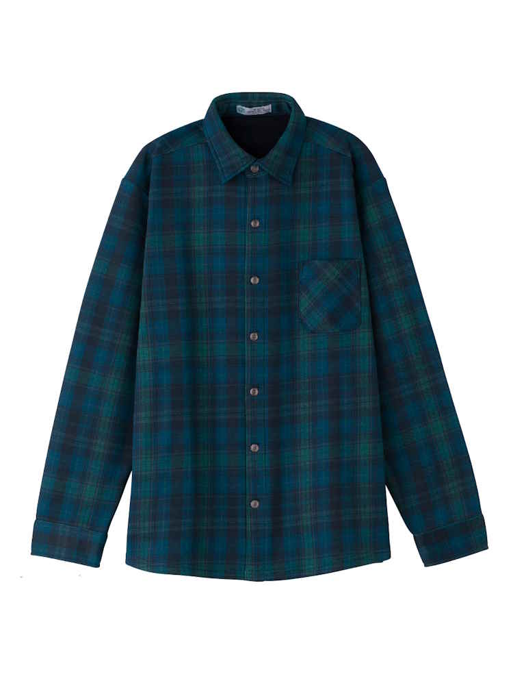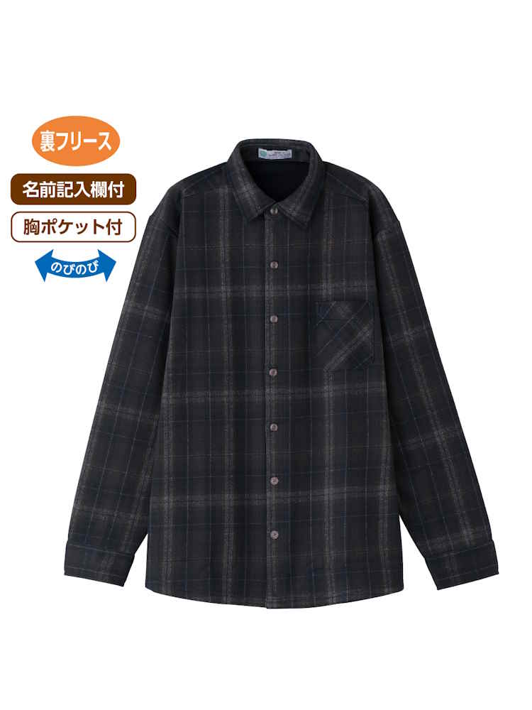 【前開き】【あったか】裏フリース斜め釦ホールストレッチシャツ/紳士用/メンズ/高齢者/シニア/秋冬/名前記入欄付/のびのび 【CF】(ネイビー)