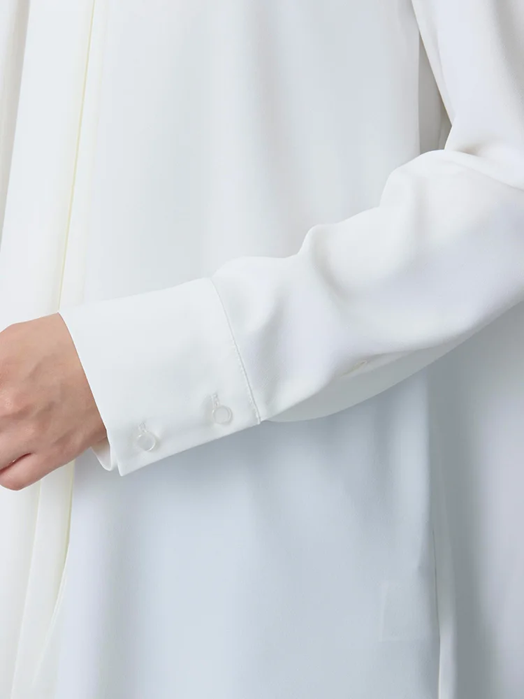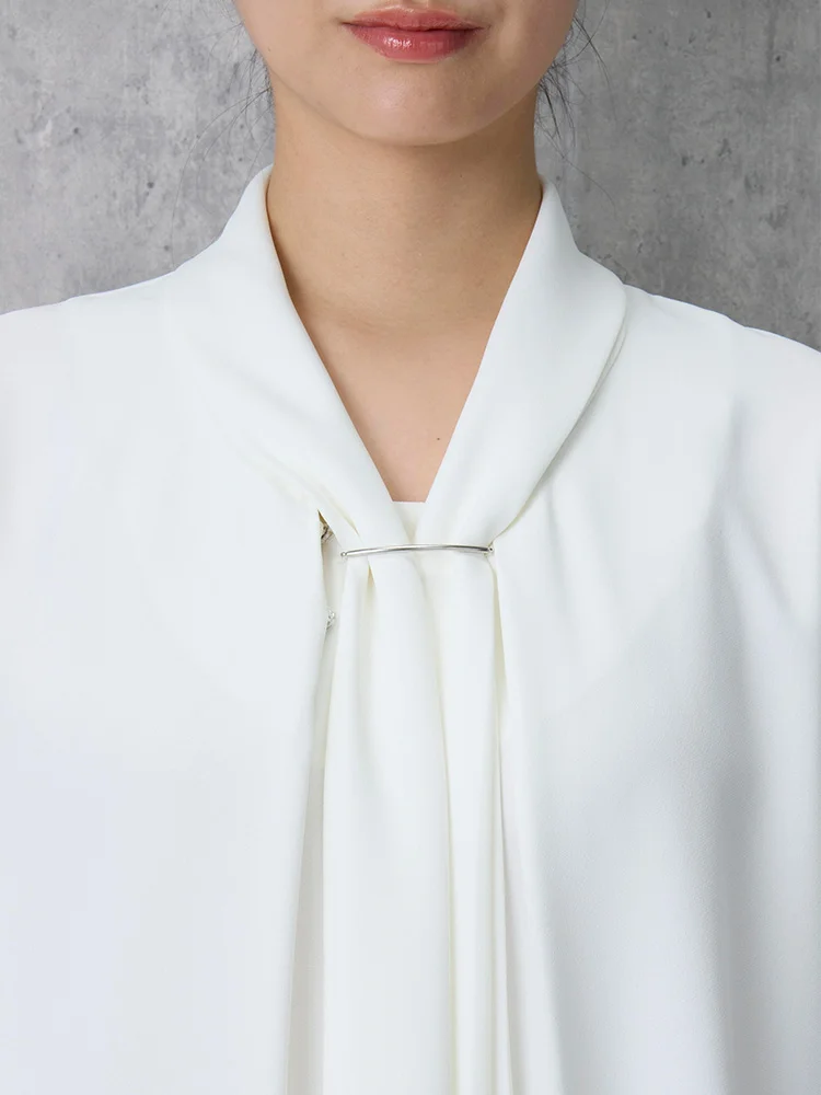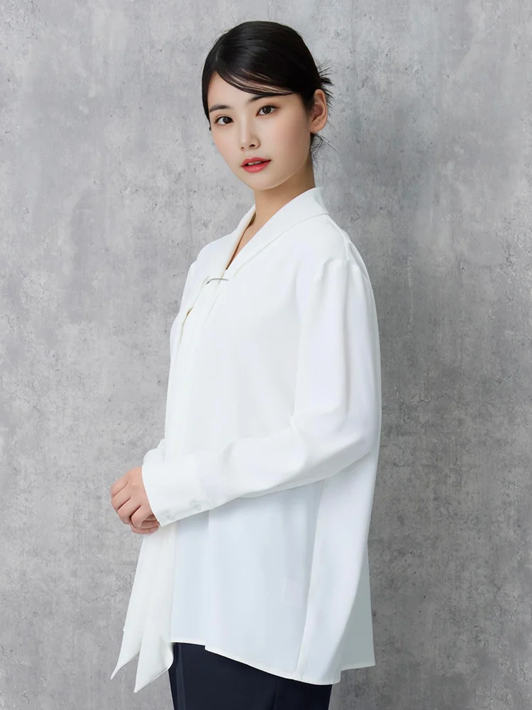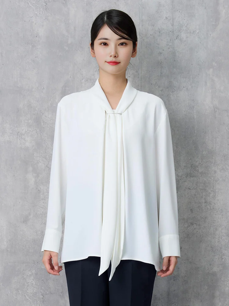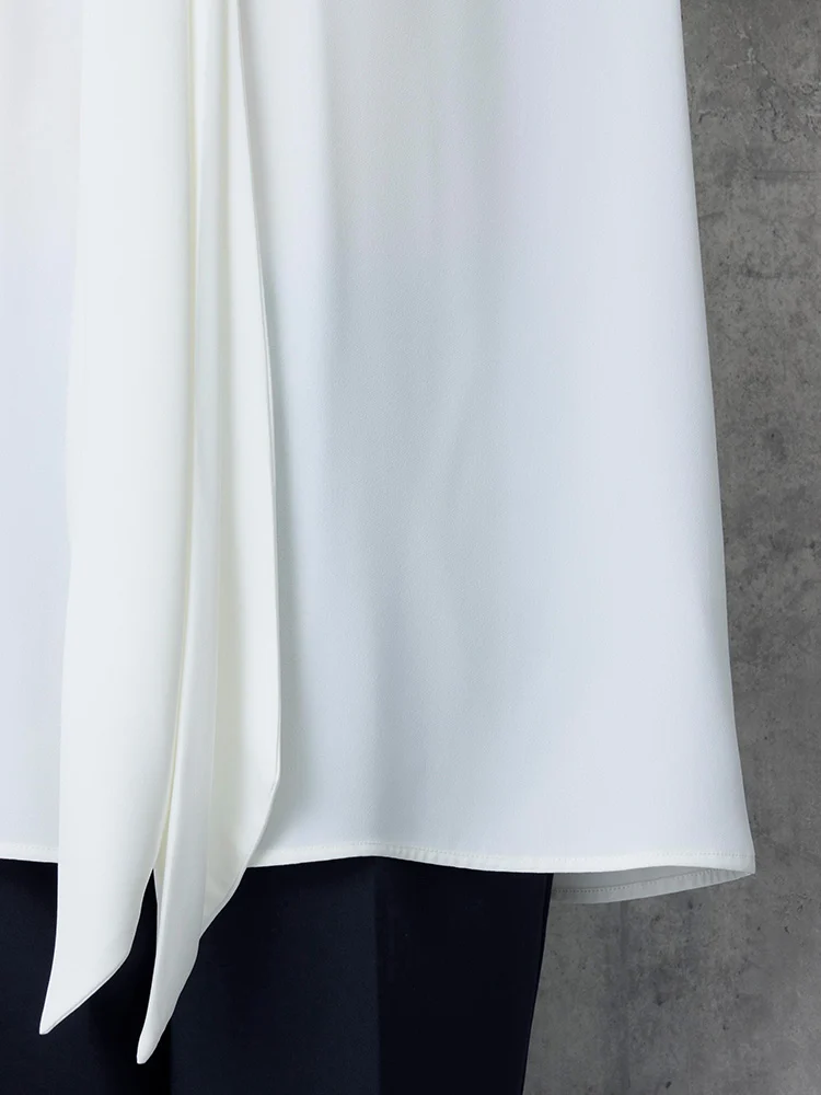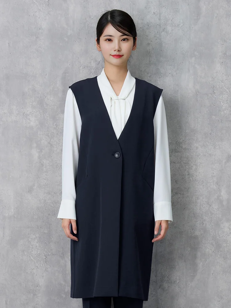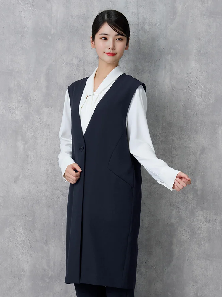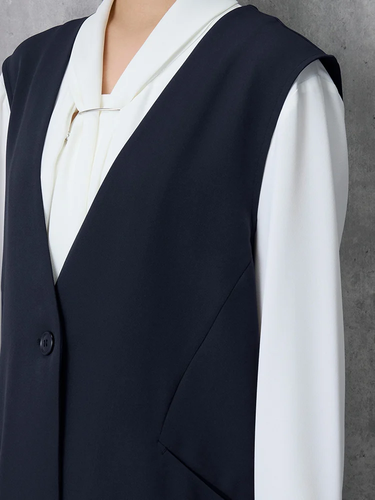 昨今流行りのジレは着るだけでこなれ感を演出し、またボウタイブラウスをセットしているので簡単にスタイリングが決まります。