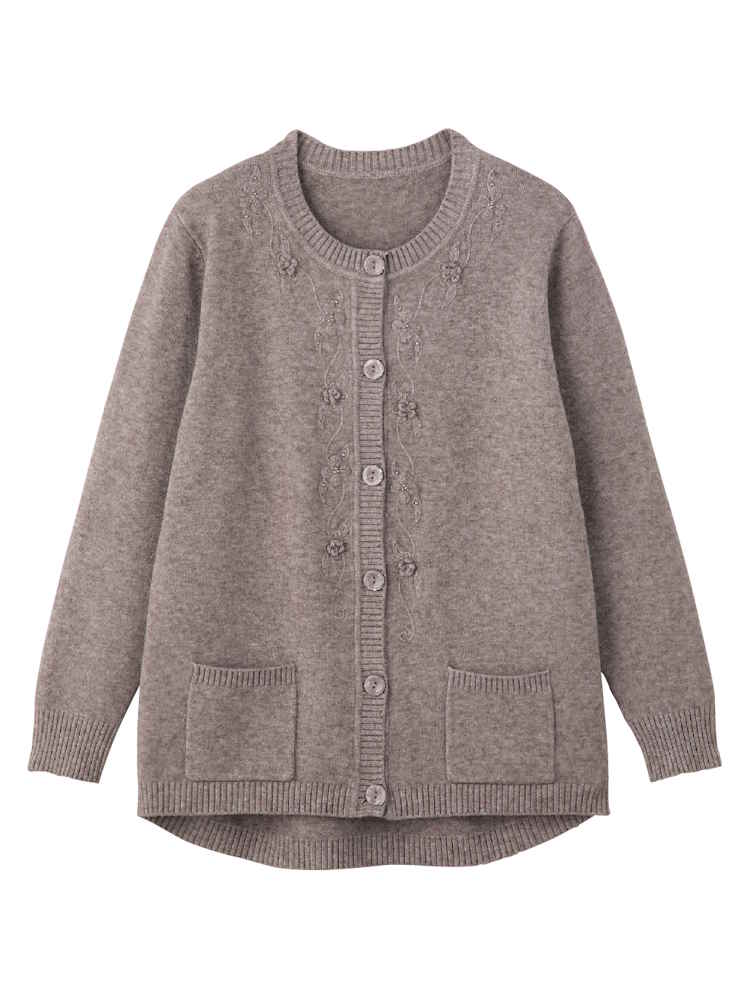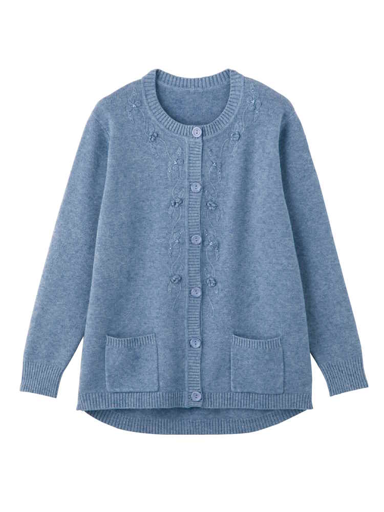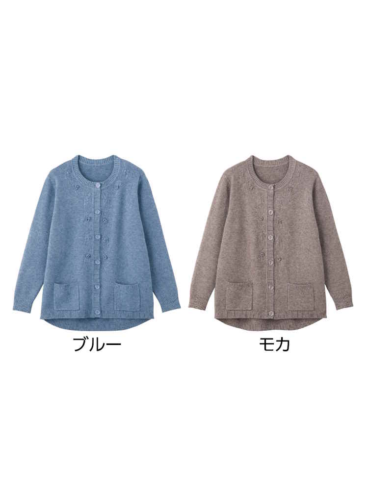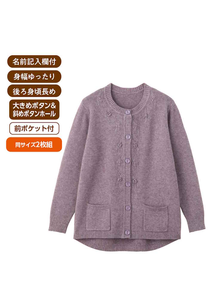 【前開き】【秋冬】もちもちニット斜め釦ホールカーディガン(2枚組)/婦人用/レディース/シニア/高齢者/おしゃれ/あったか/ギフト/プレゼント/名前記入欄付/ゆったり 【CF】
