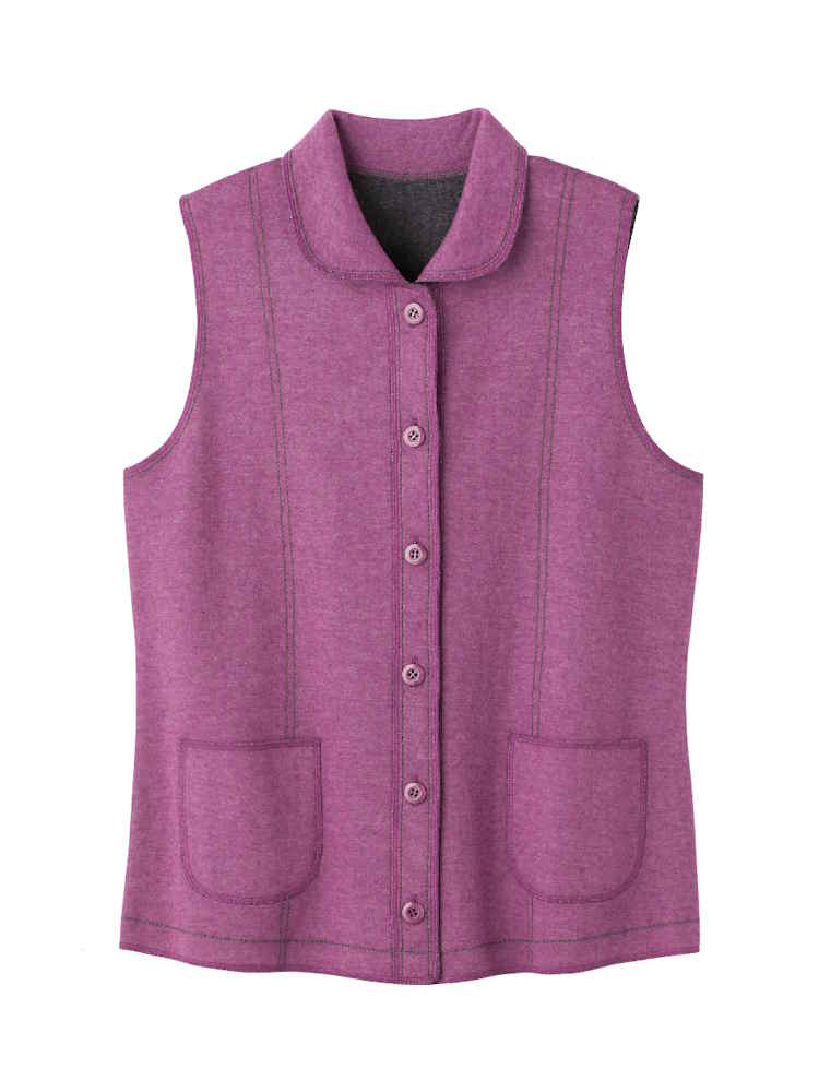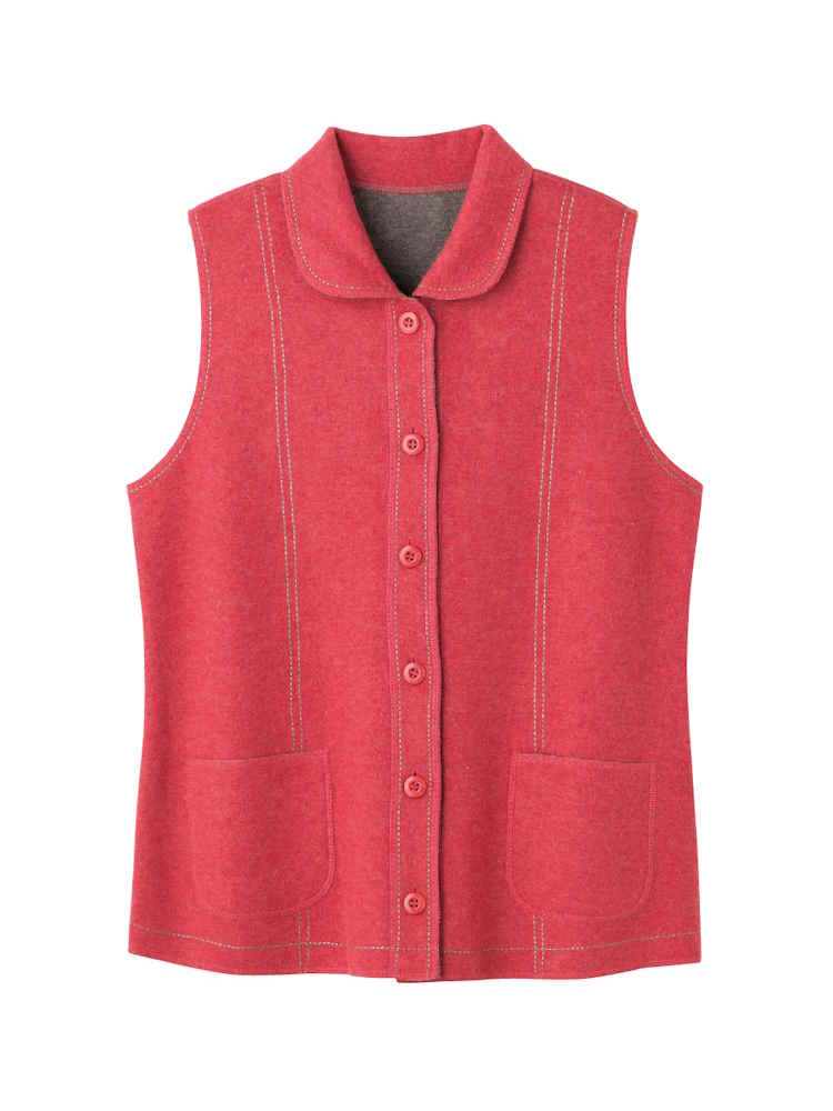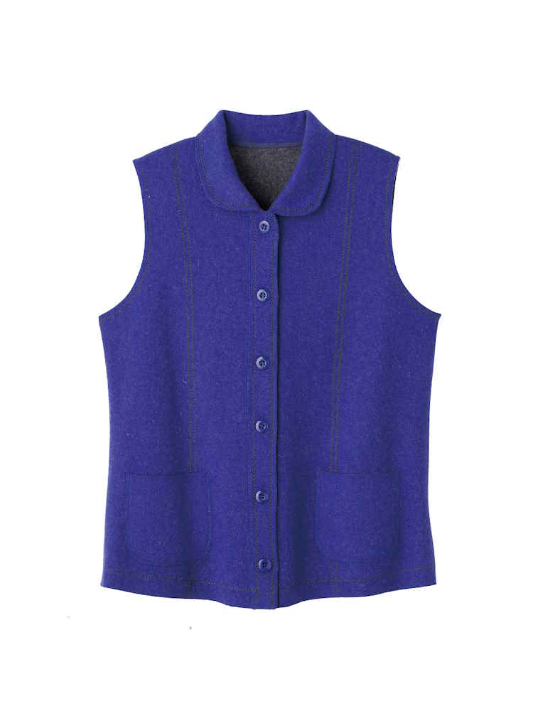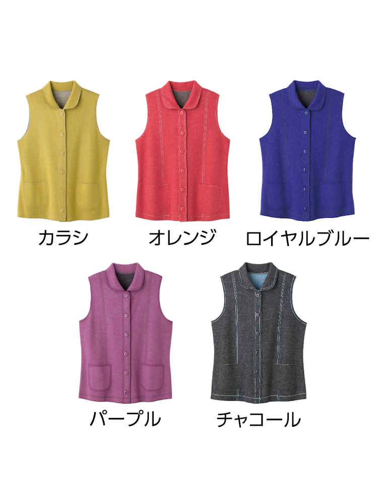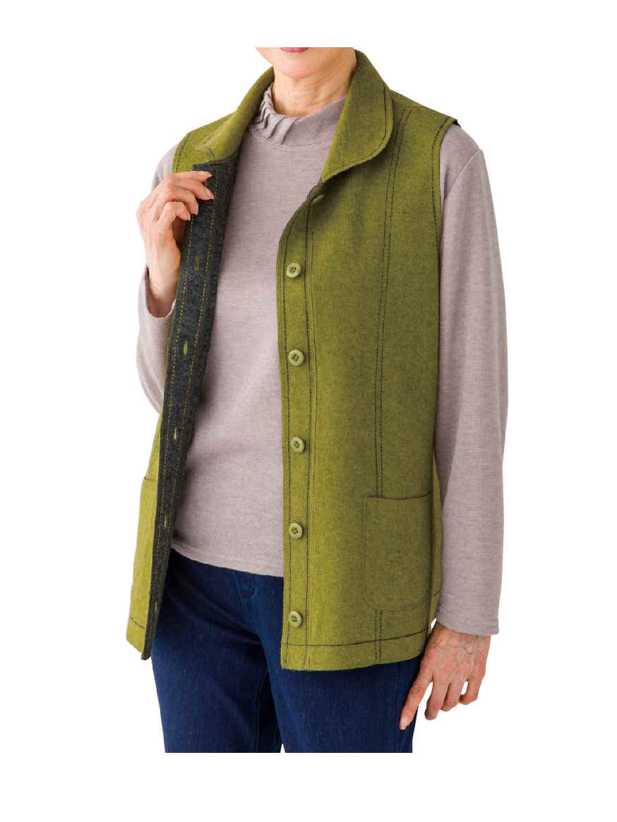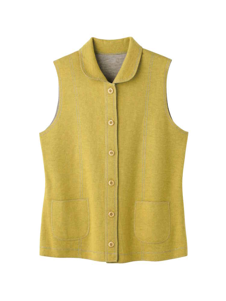 【リバーシブル】【大きめボタン】圧縮ニットリバーシブル衿付ベスト/婦人用/レディース/高齢者/シニア/名前記入欄付き/あったか/おしゃれ/お出かけ/ギフト/プレゼント 【CF】(イエロー系)