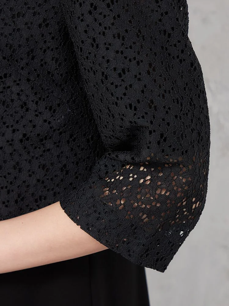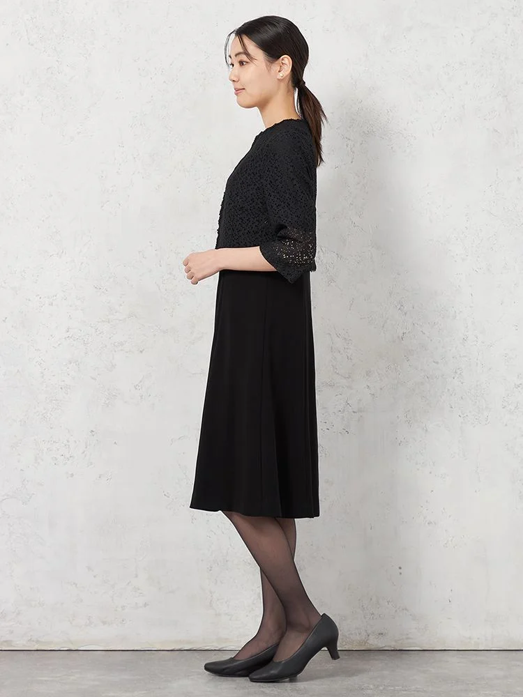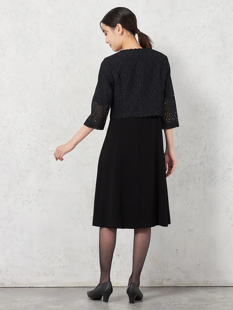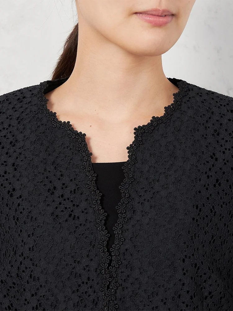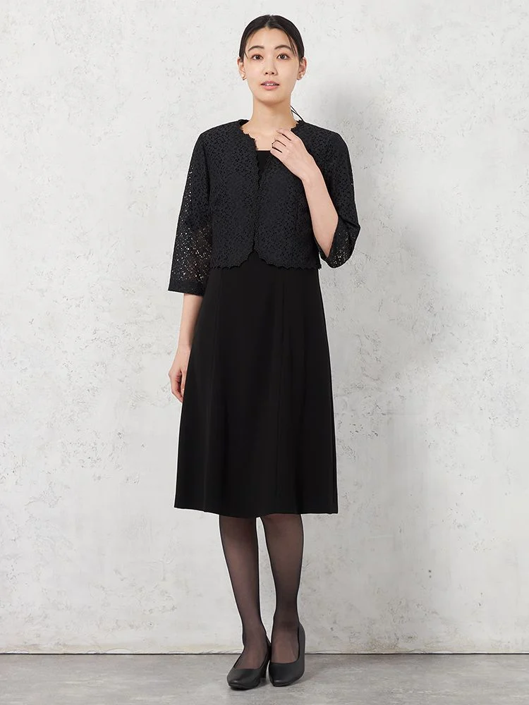 【WEB限定フォーマル】即納 レースボレロ3点セット ジャケット/ワンピース/ボレロ 黒無地 通年【レディース】