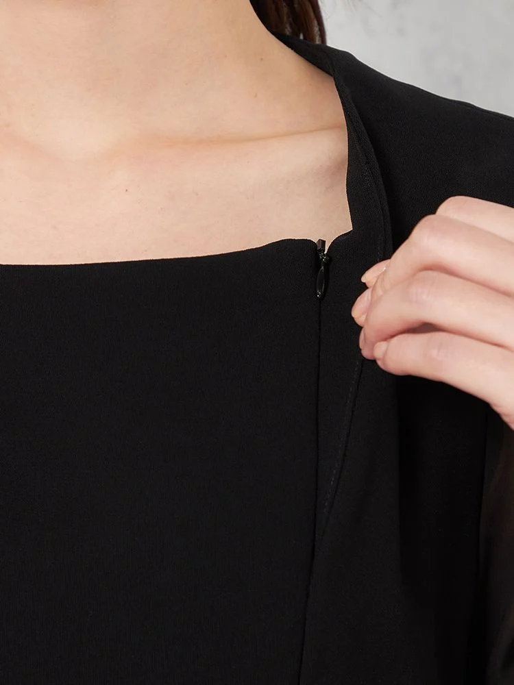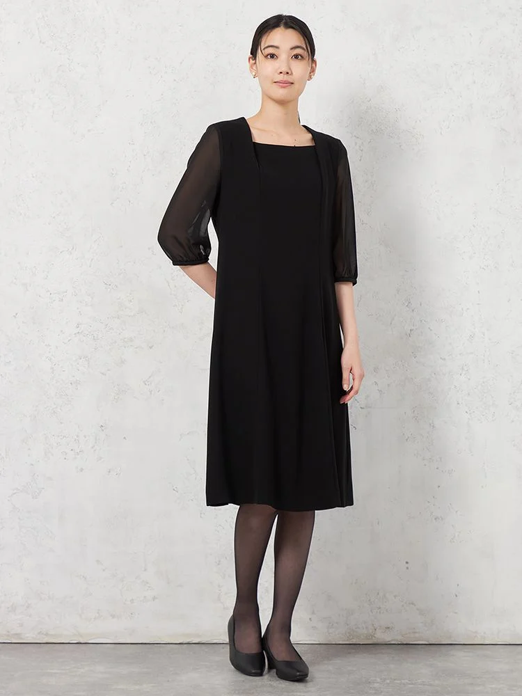 【WEB限定フォーマル】即納ロールカラーアンサンブルジャケット/ワンピース黒無地通年【レディース】
