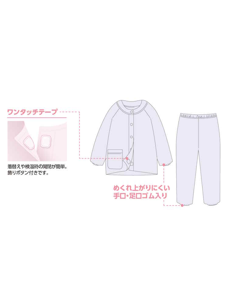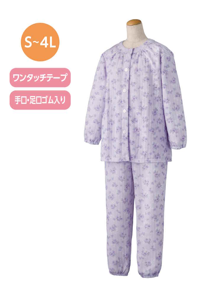 【前開き】【秋冬】ワンタッチキルトパジャマ1 大きめサイズ/婦人用/レディース/シニア/高齢者/洗濯機OK/寝巻/ギフト/プレゼント 【CF】(ピンク)