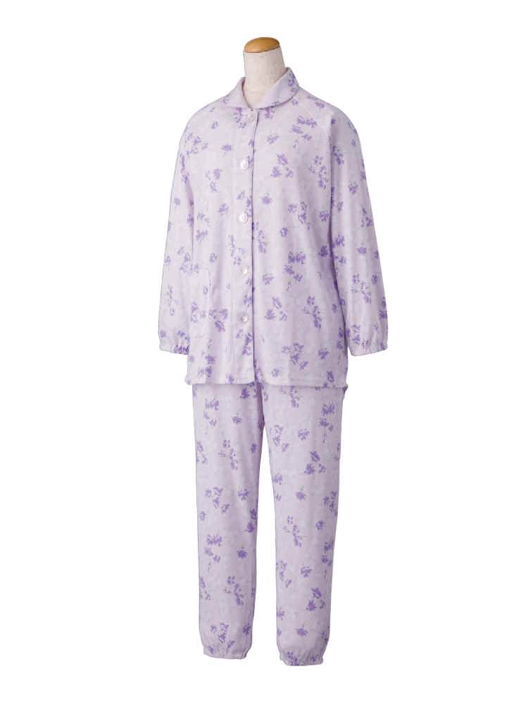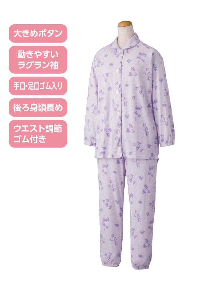 【前開き】【年間素材】大きめボタンパジャマ4/婦人用/レディース/シニア/高齢者/後ろ長め/寝巻/ギフト/プレゼント 【CF】(サックス)