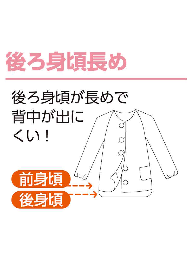 背中が丸くなって後ろが気になる方にも、後ろ身頃長めで背中が出にくく安心です。