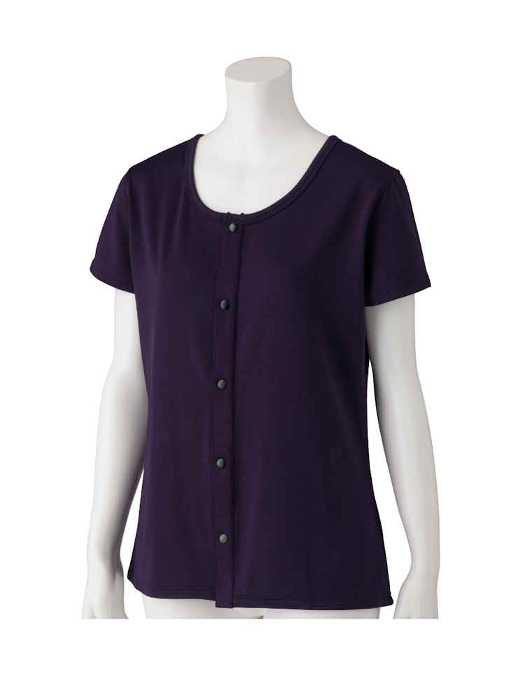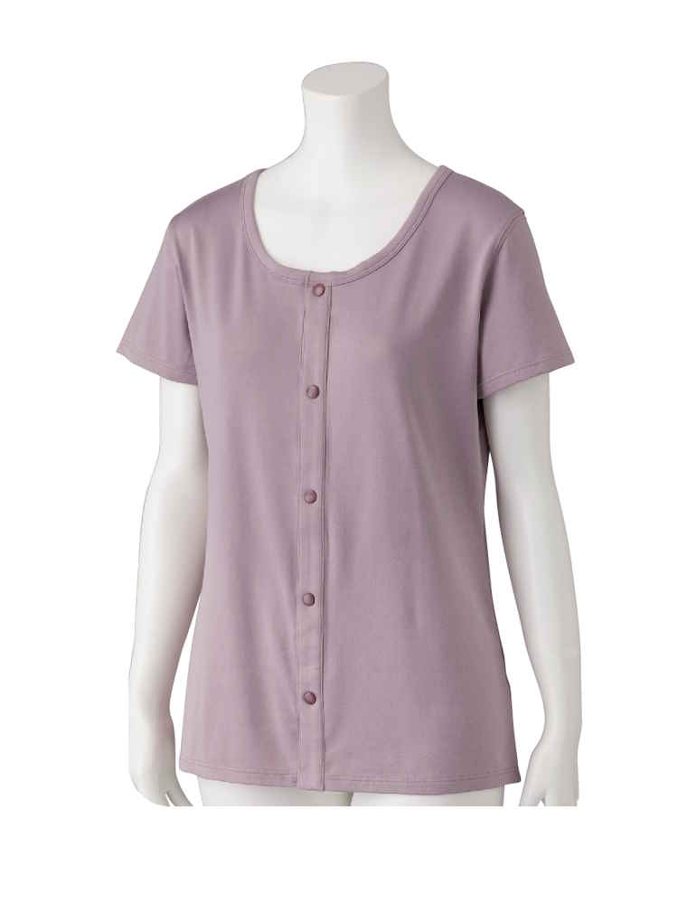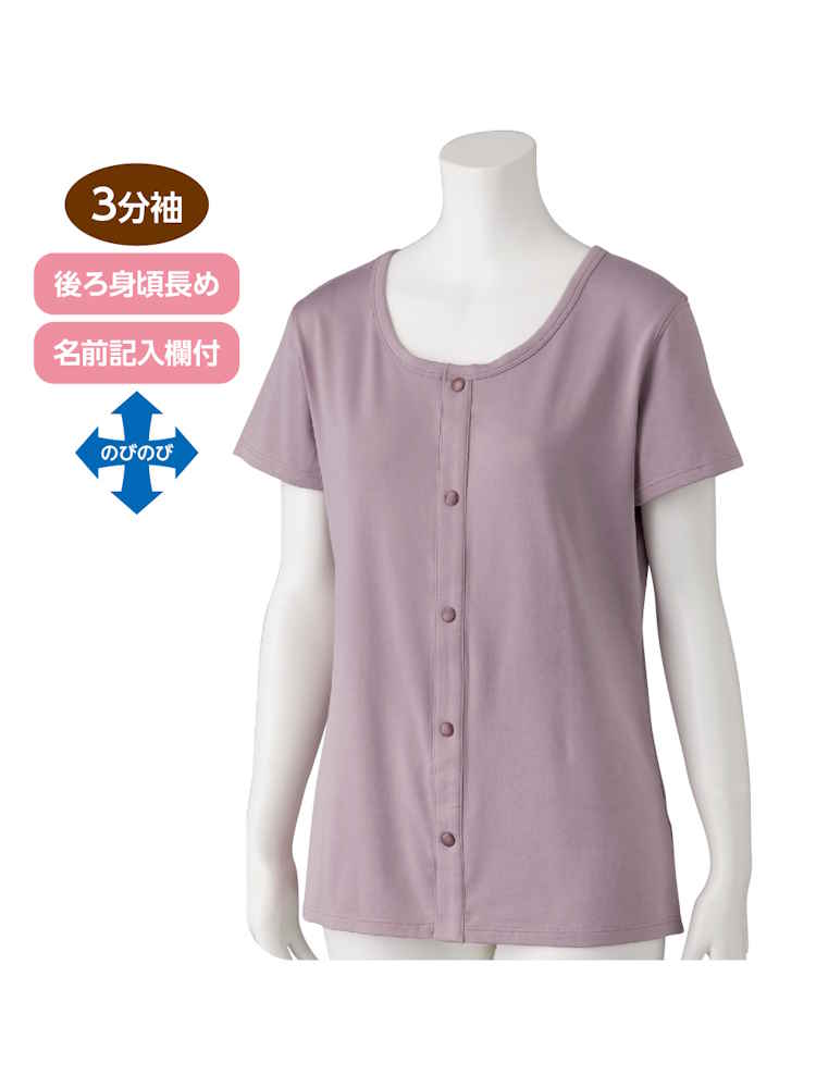 【前開き】【あったか】のびのびラクラク裏起毛3分袖ホックインナー/婦人用/レディース/高齢者/シニア/秋冬/裏起毛/後ろ長め/名前記入欄付 【CF】(パープル)