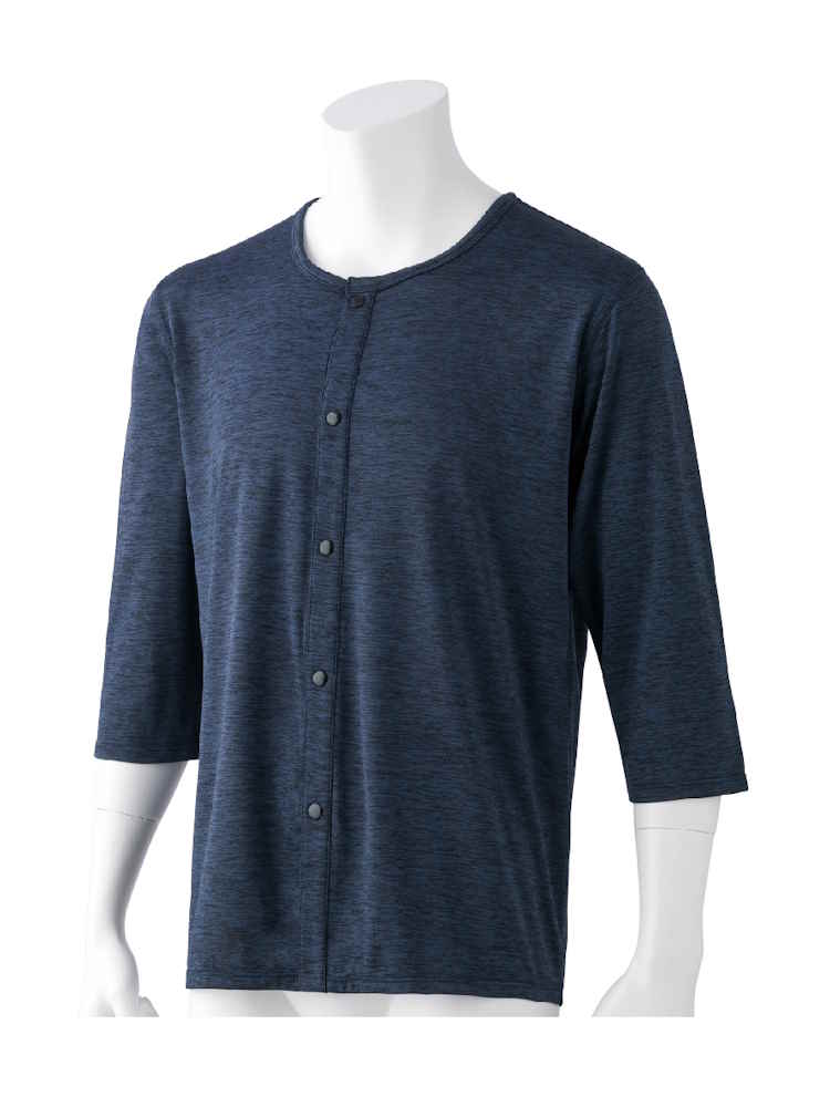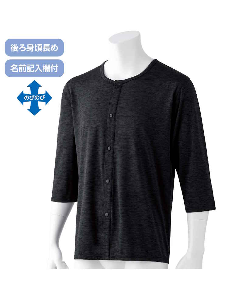 【前開き】【あったか】のびのびラクラク裏起毛8分袖ホックインナー/紳士用/メンズ/シニア/高齢者/着脱しやすい/秋冬/肌着 【CF】(C.グレー)