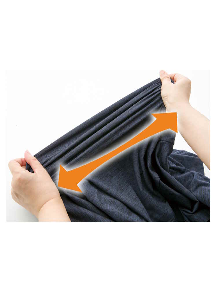 伸びる生地の裏起毛素材で暖かく快適な着心地、着脱もらくらく。
