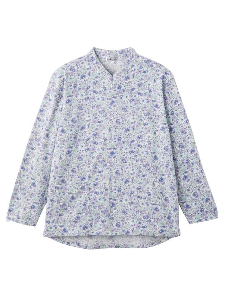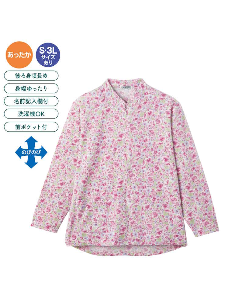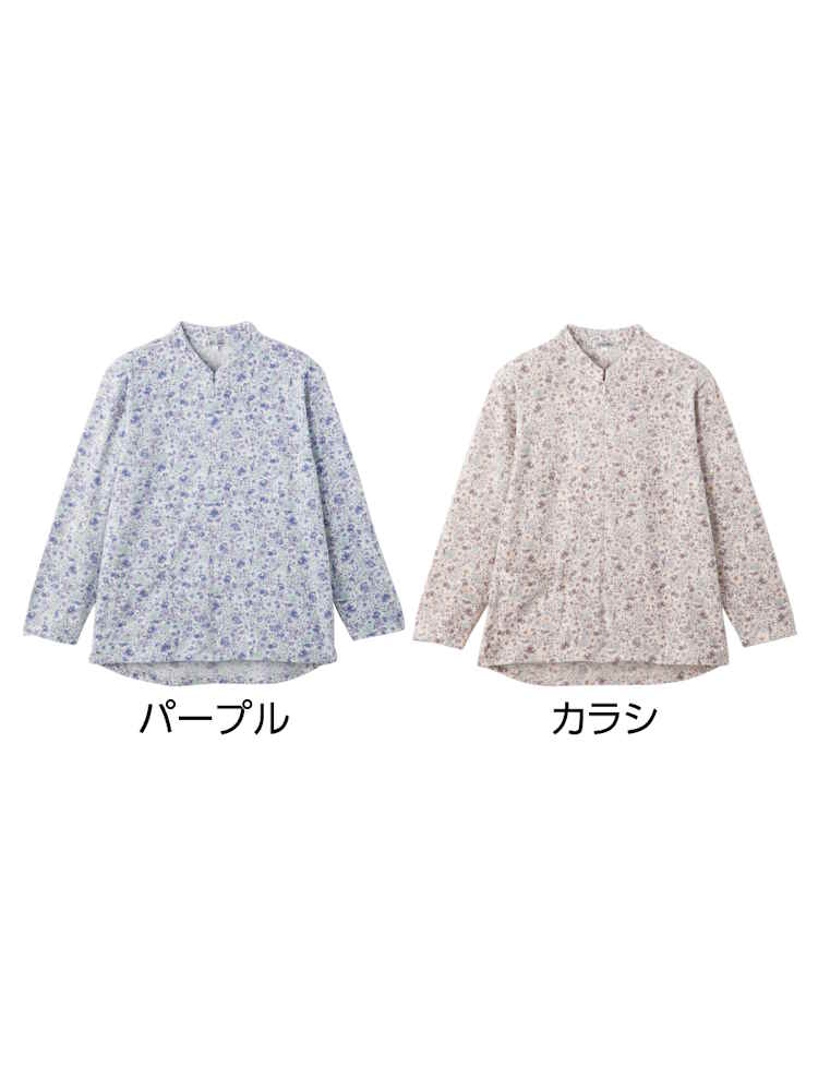 【前開き】【秋冬】ロングファスナーあったかTシャツ3/婦人用/レディース/高齢者/シニア/洗濯機OK/後ろ長め/名前記入欄付/前ポケット/ゆったり/おしゃれ/ギフト/プレゼント 【CF】(パープル)