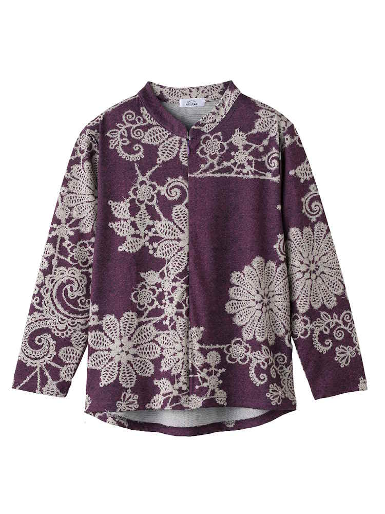 【前開き】【秋冬】ロングファスナーTシャツ(3枚組)/婦人用/レディース/高齢者/シニア/名前記入欄付/後ろ長め/ゆったり/ギフト/プレゼント 【CF】