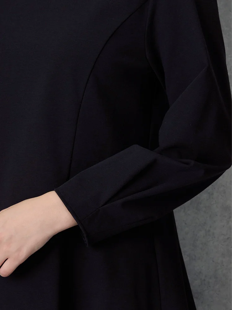 伸縮性あるジャージ素材なので、きちんと感とラクちん感を両方叶えるブラウスです。