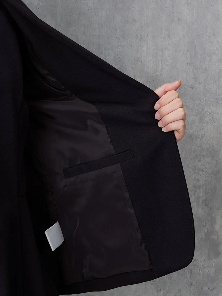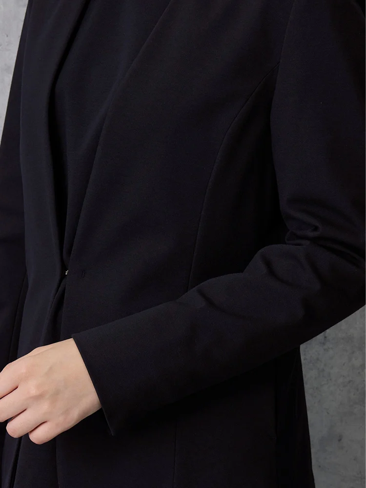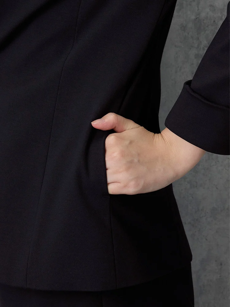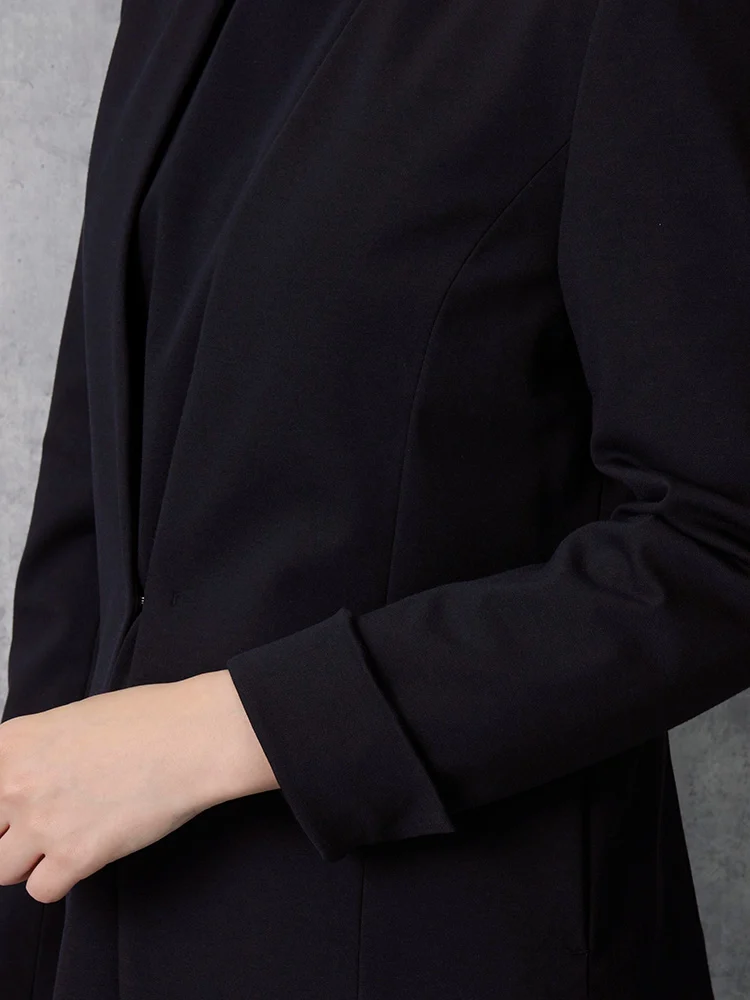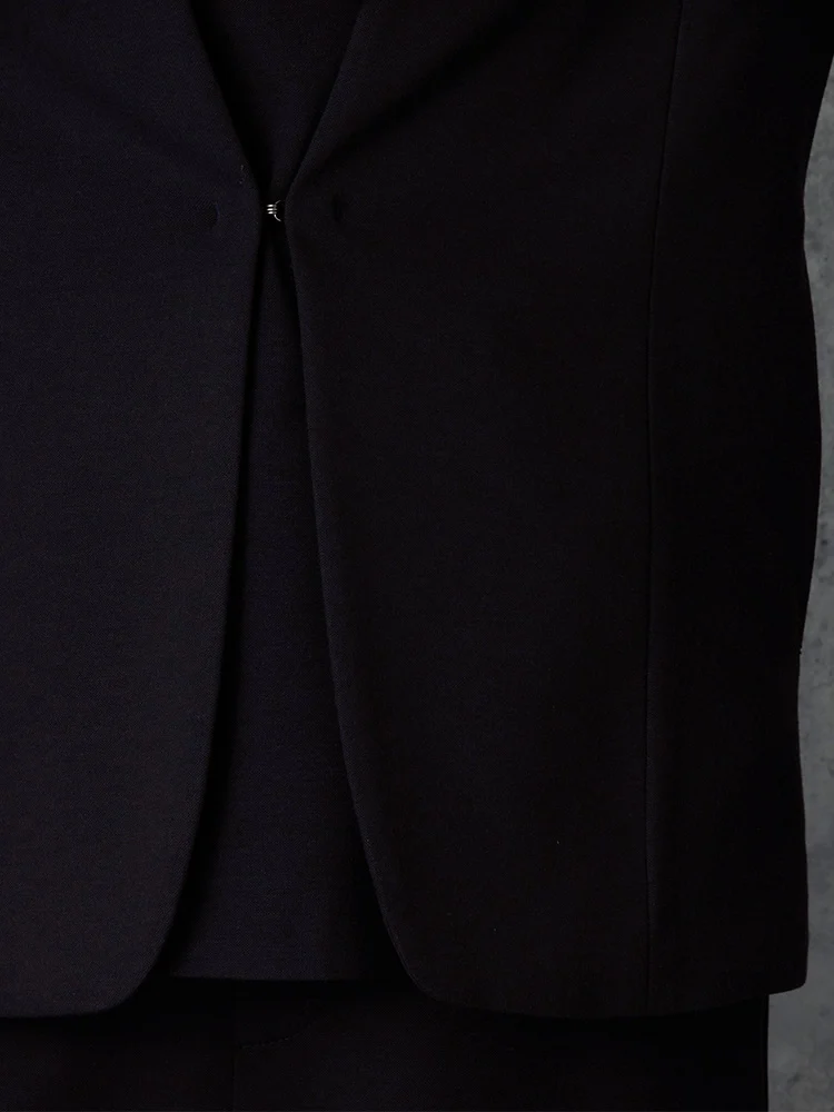 伸縮性あるジャージ素材なのでストレッチ性が高く快適な着用感がでます。きちんと感と楽ちん感を両方叶えるジャケットです。