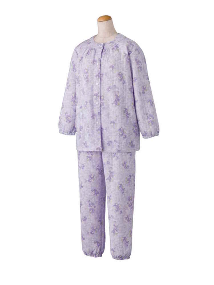 【前開き】【秋冬】ワンタッチキルトパジャマ1/婦人用/レディース/シニア/高齢者/洗濯機OK/寝巻/プレゼント/ギフト【CF】