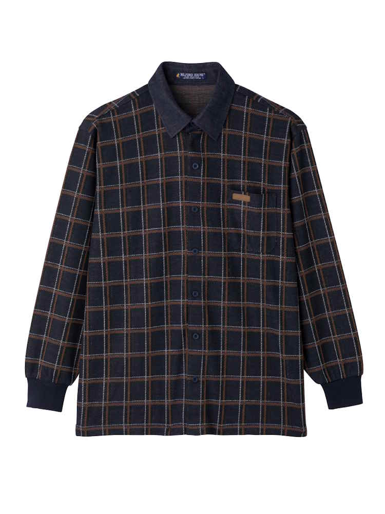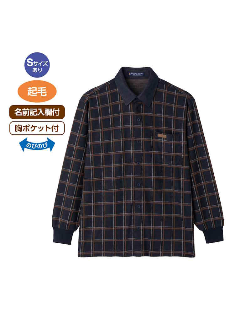 【前開き】【秋冬】裏起毛ワンタッチテープニットシャツ/紳士用/メンズ/高齢者/シニア/名前記入欄付/胸ポケット付/洗濯機OK/自宅で洗える/ギフト/プレゼント【CF】