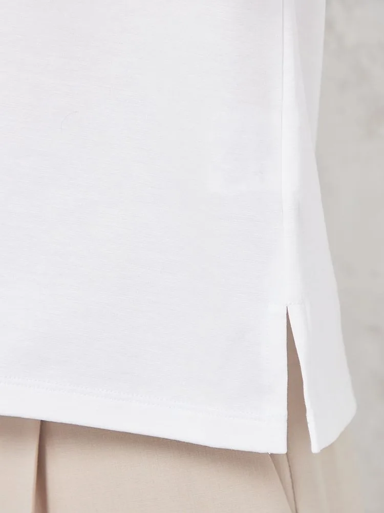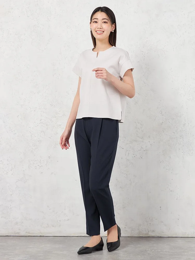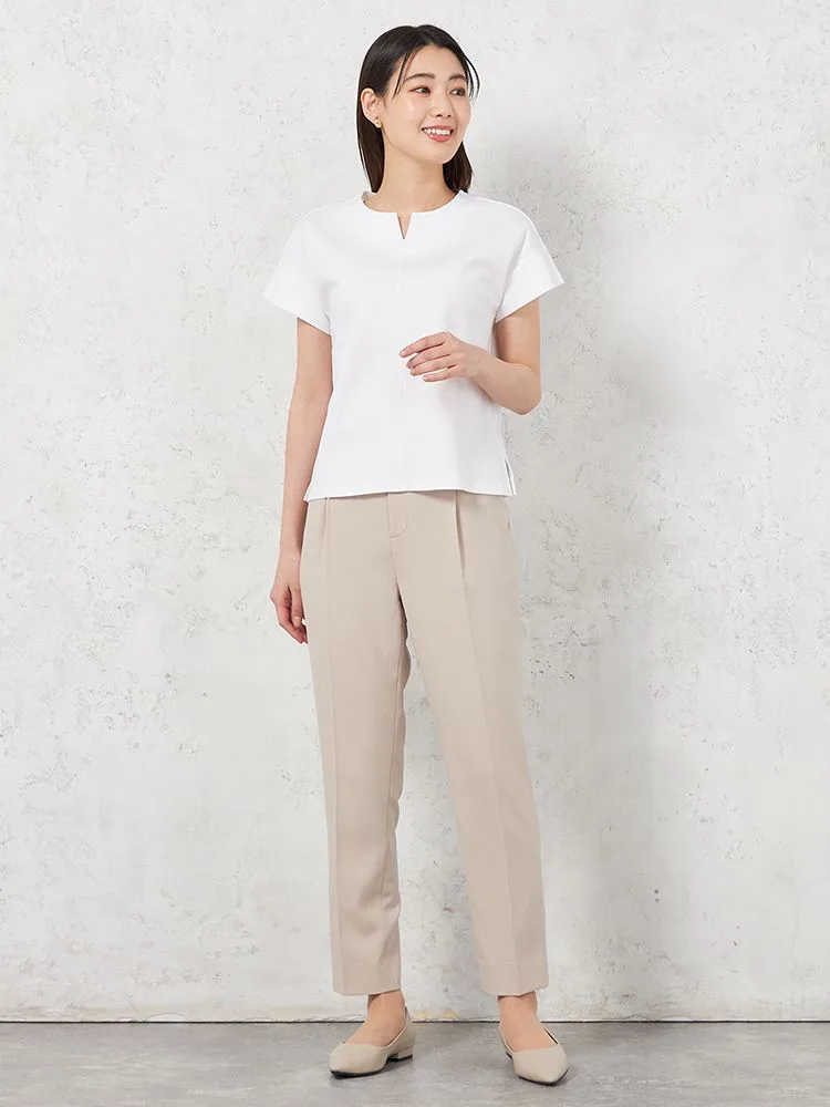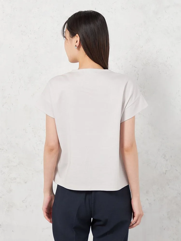 【INDIVI】シルケットポンチ フロントVデザイン 半袖Tシャツ 春夏【レディース】(オフホワイト)