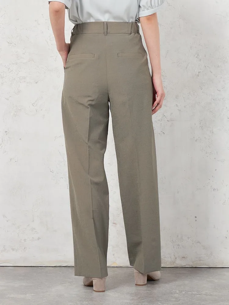 表面変化のあるワッシャー素材で絶妙なポコポコ感が夏らしく、腰まわりにゆとりをもたせたトレンドシルエットのワイドパンツ。
