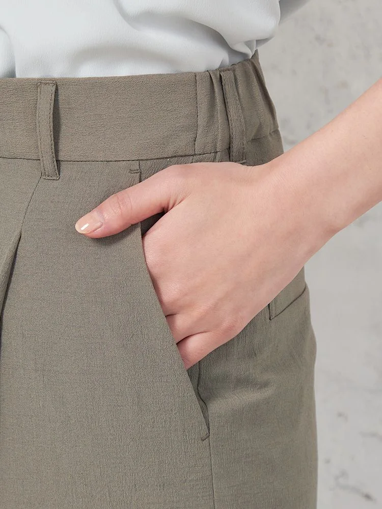 左右に1本ずつ生地の折り込みがあり、標準的なシルエットでシーンを選ばず上品なシルエットが楽しめます。
