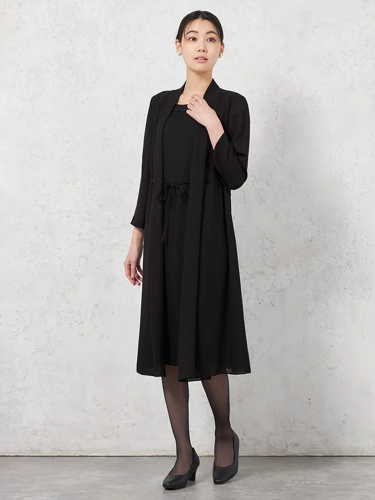 【ウォッシャブル】軽量フォーマル リボンベルト付きトッパーワンピース SOFFICE 通年【レディース】
