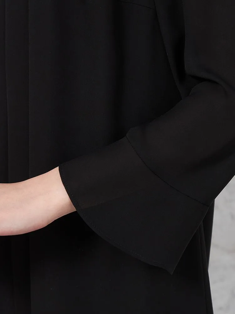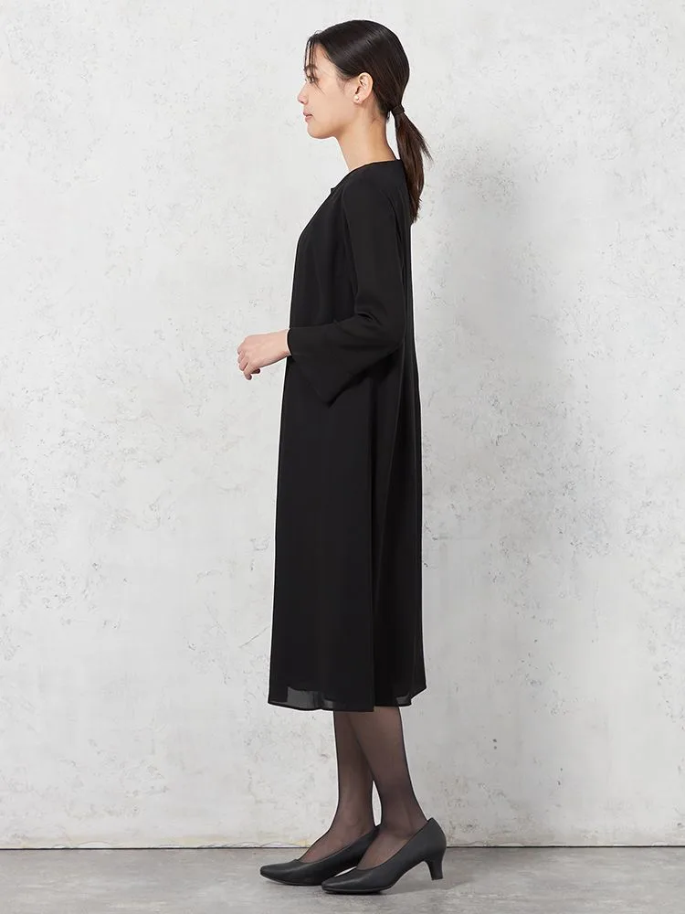 縦ラインを強調するドレープも相まってゆったりしているのに、着やせ効果が期待できます。