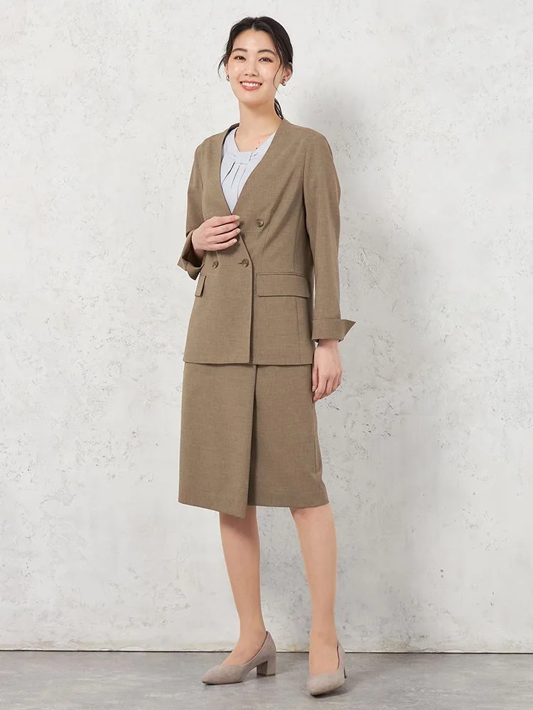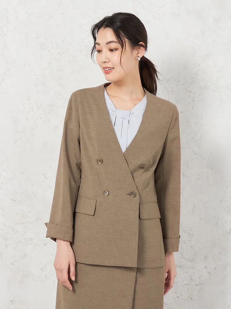 【ウォッシャブル】ノーカラーダブルジャケットリネンライクメランジ生地無地SOFFICE春夏【レディース】
