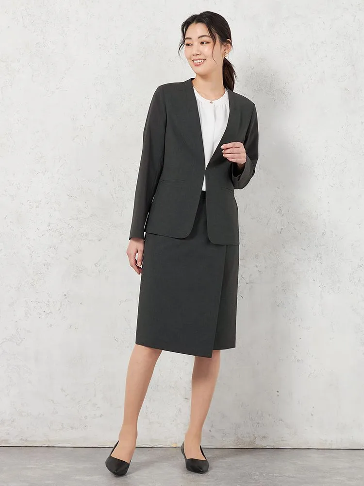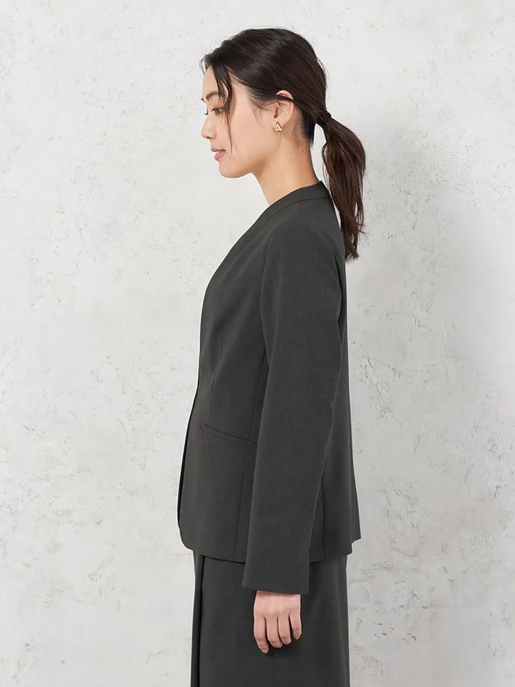 【ウォッシャブル】ノーカラージャケットストレッチ【ビジネス/セレモニーシーン】無地SOFFICE通年【レディース】