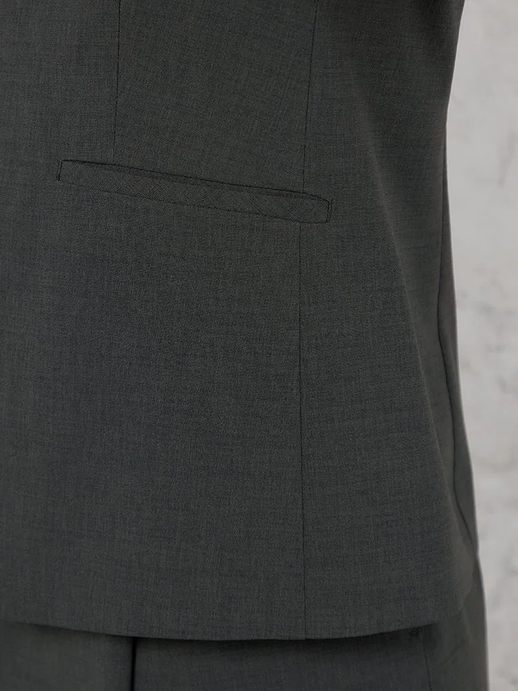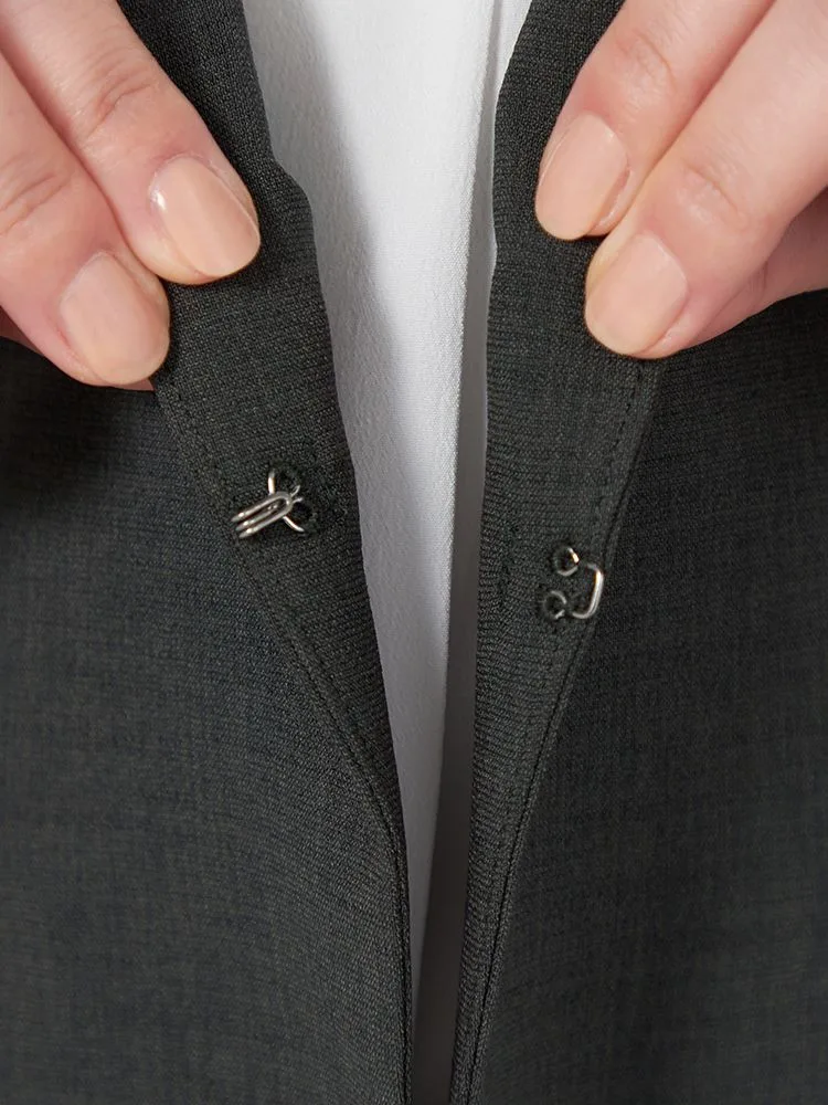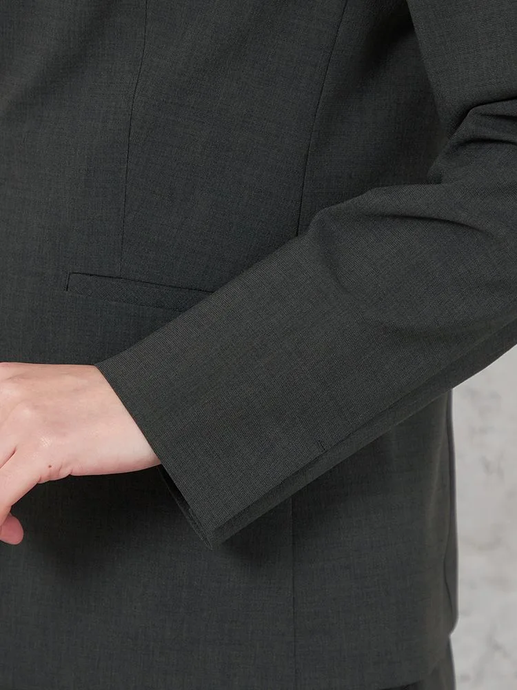 後ろネックは立ち上がりのある衿腰切替にてノーカラーでも端正な印象になっています。
