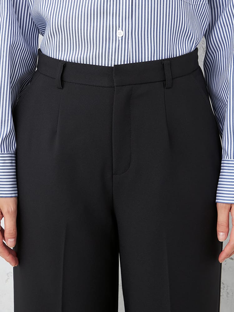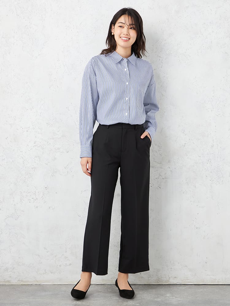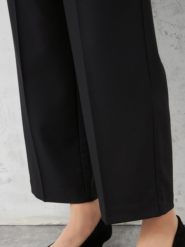 【ウォッシャブル】ウィメンズフルレングスパンツストレッチSOFFICEブラック無地通年【レディース】
