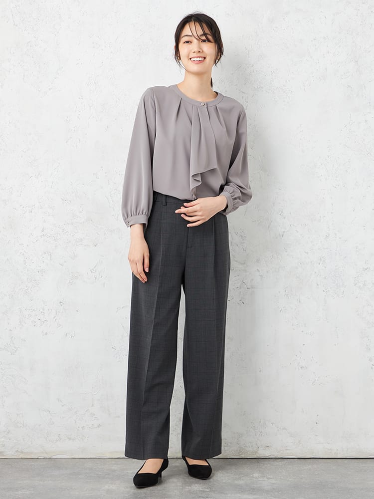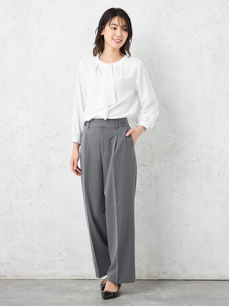 【WALKPLUS】 T/Rトロサイドタブワイドパンツ ウォッシャブル 通年 【レディース】(C.グレー)