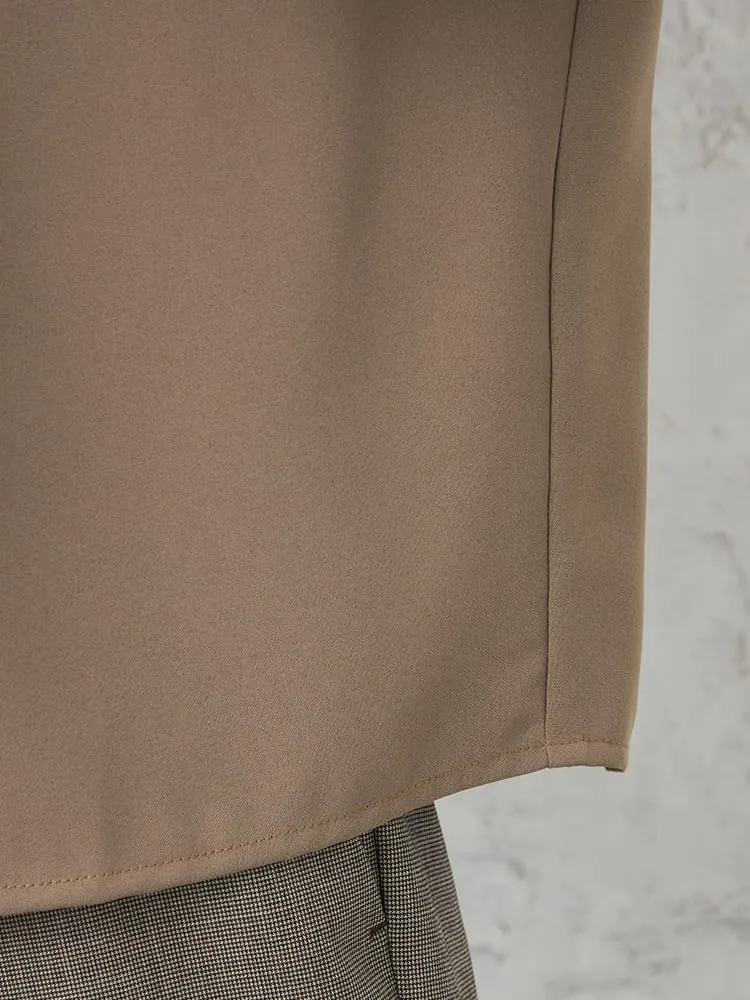 少し厚手の上質素材で透け感の心配なし!大人のきれいめスタイルを演出します。