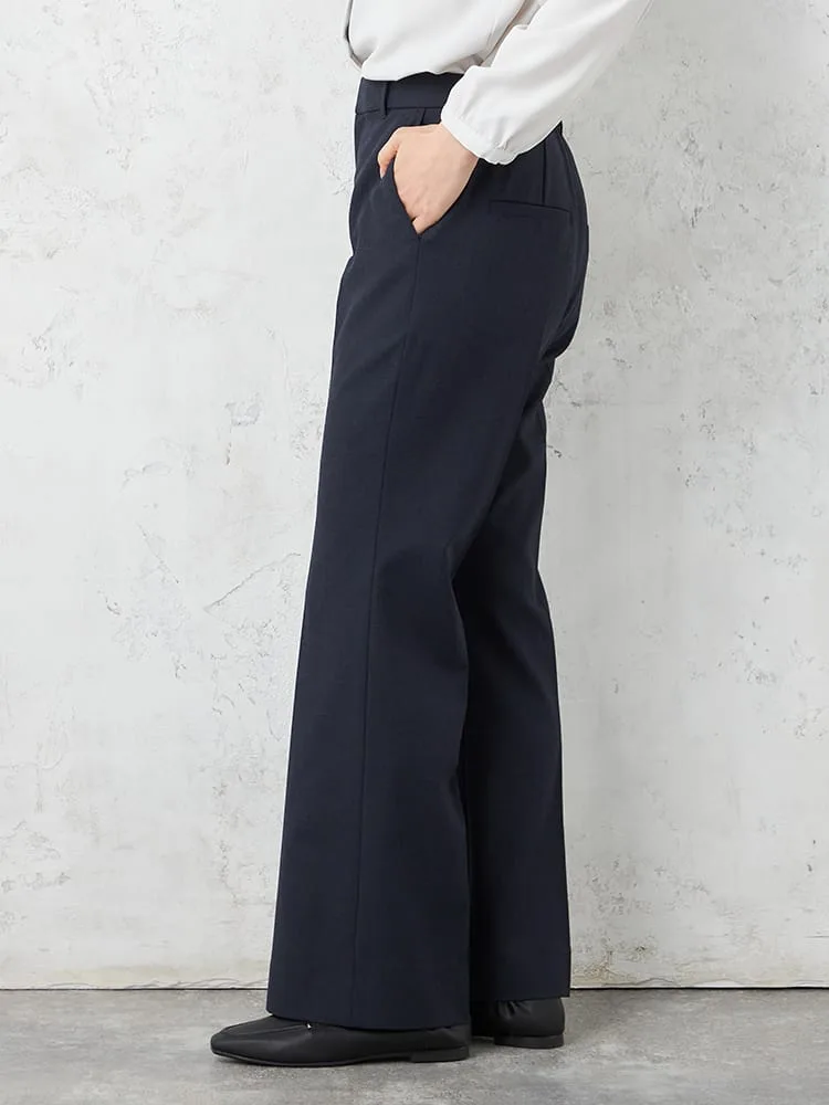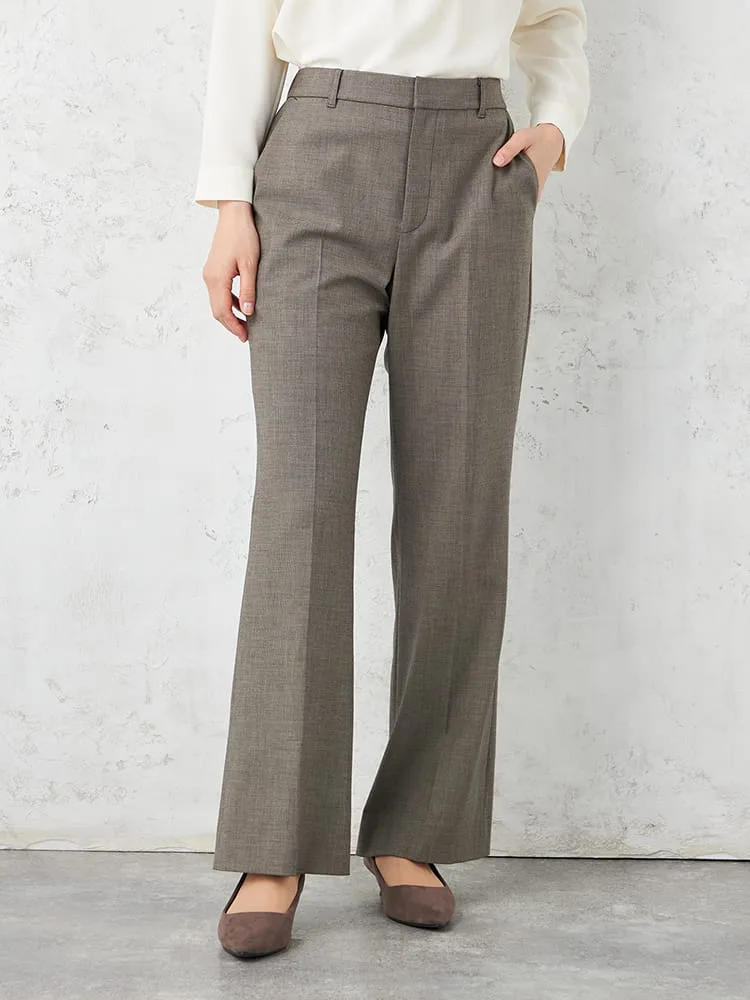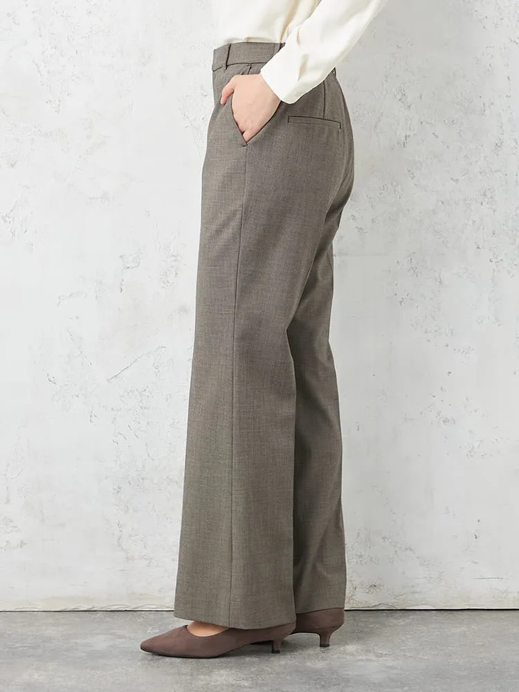 【働ラク肩ラクスーツ】ウール混テーパードパンツウォッシャブルストレッチS&MWHITE秋冬【レディース】