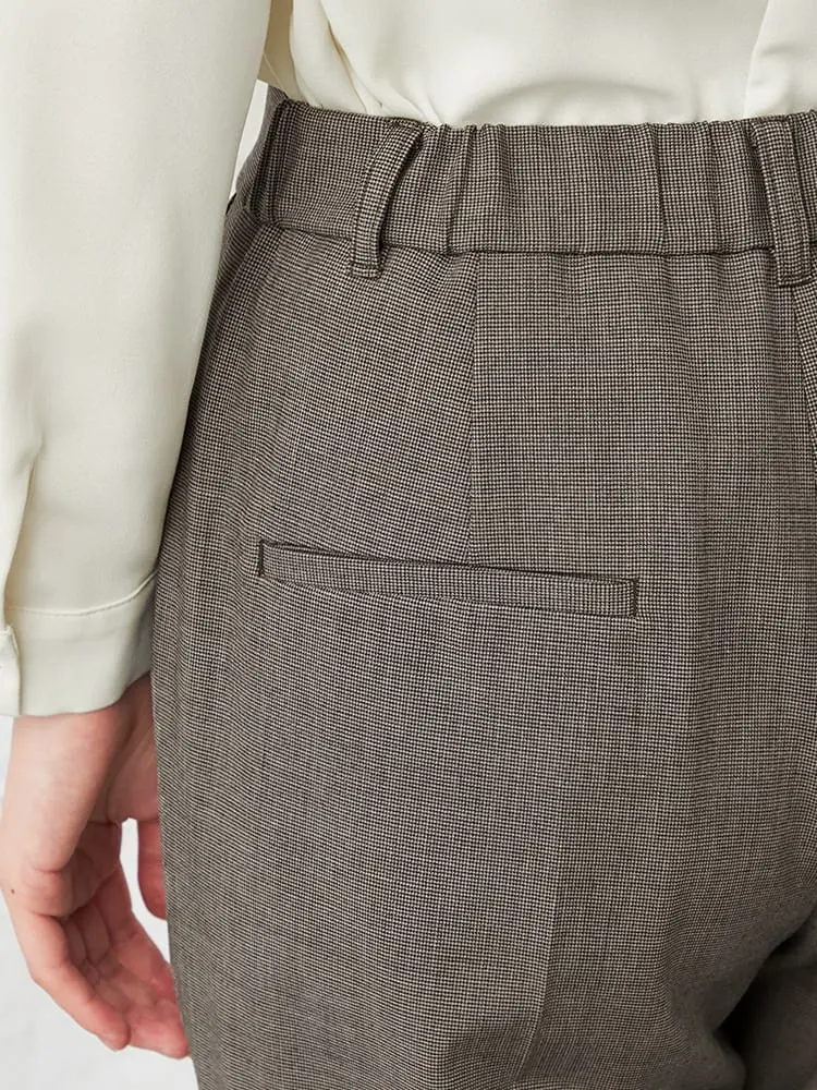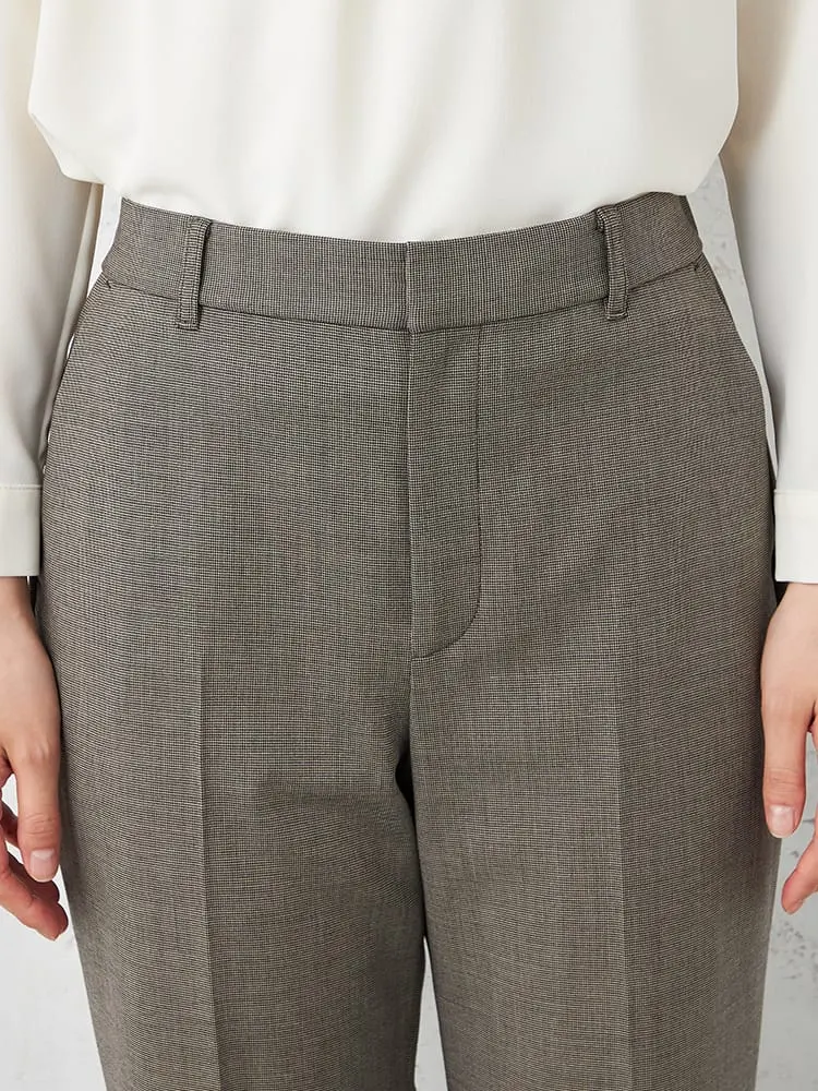 【INDIVI】キャーリーマンウール混テーパードパンツチェックウォッシャブル秋冬【レディース】