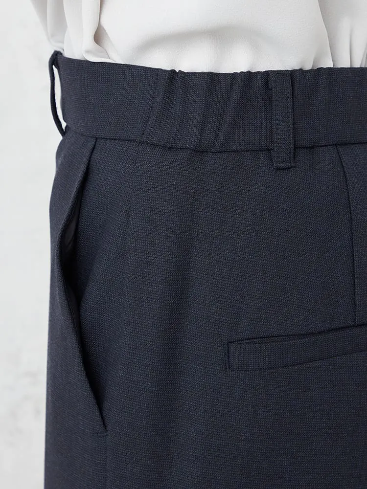 同素材のジャケットやジレとセットアップとして合わせていただくと、キレイ目できちんと感があるので学校行事、通勤用として幅広く活躍します。