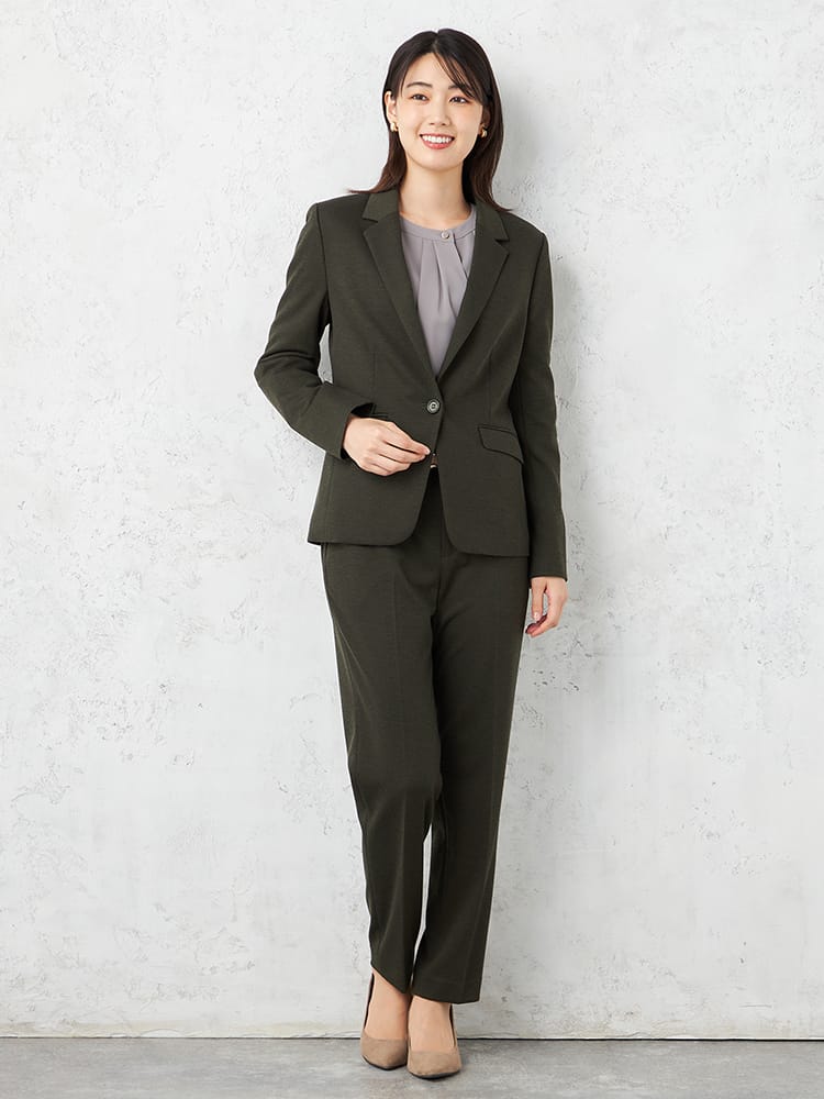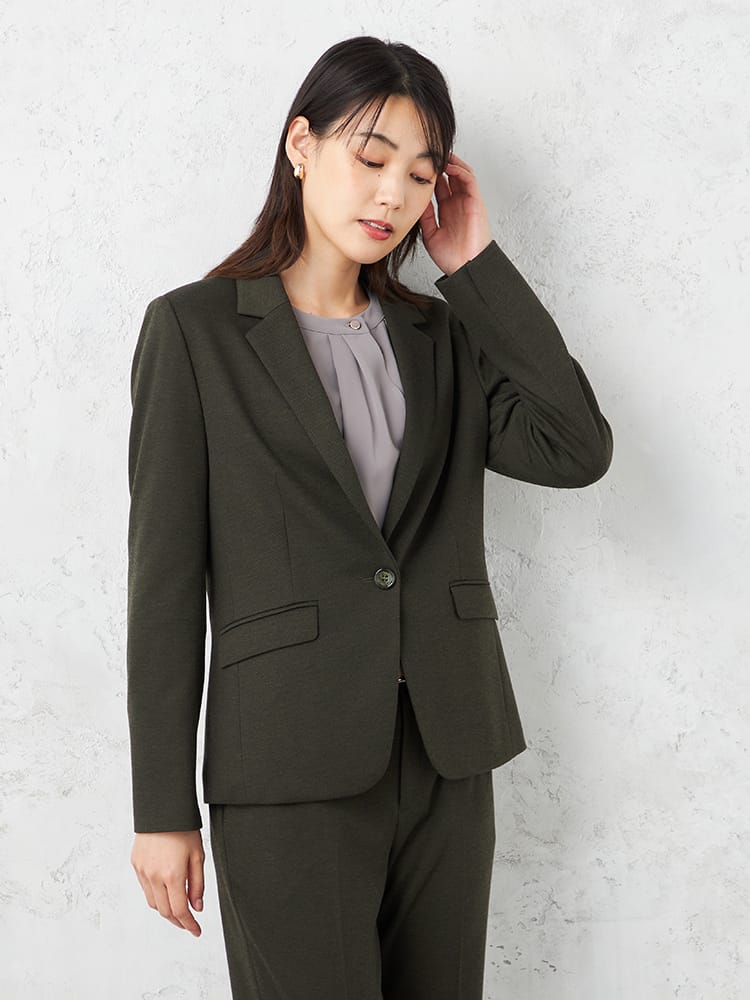 【SOFFICE】2WAYニットカルゼテーラー1ボタンジャケット 無地 ストレッチ 秋冬 【レディース】(カーキー)