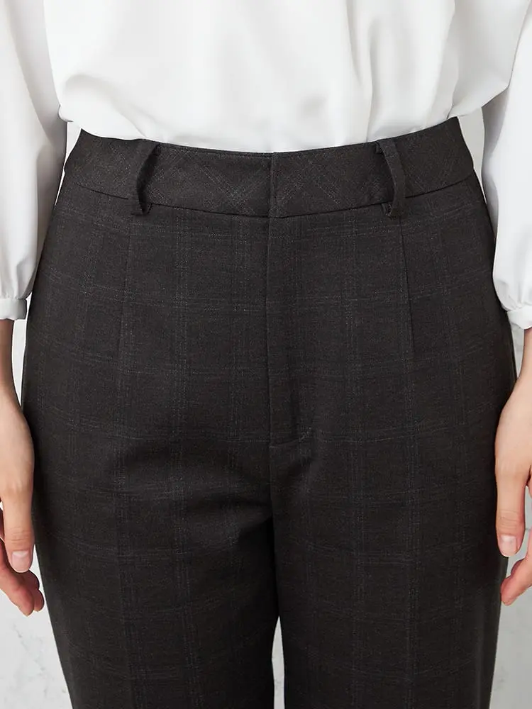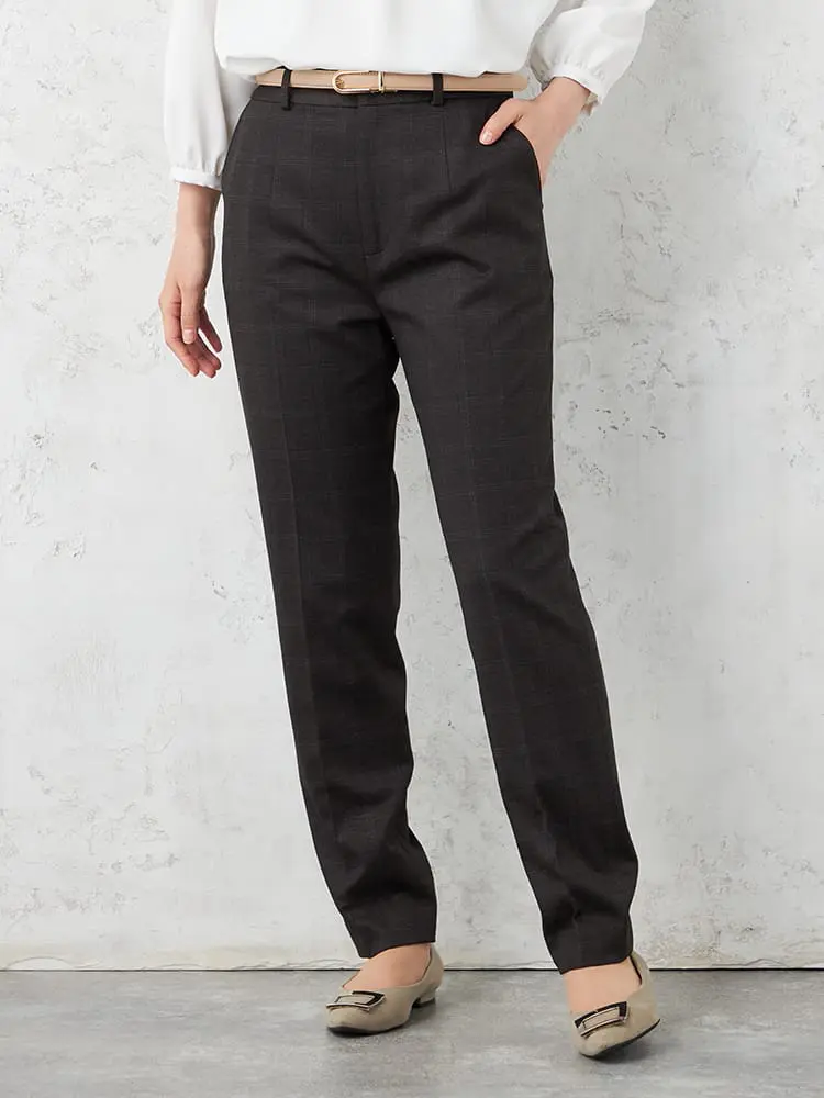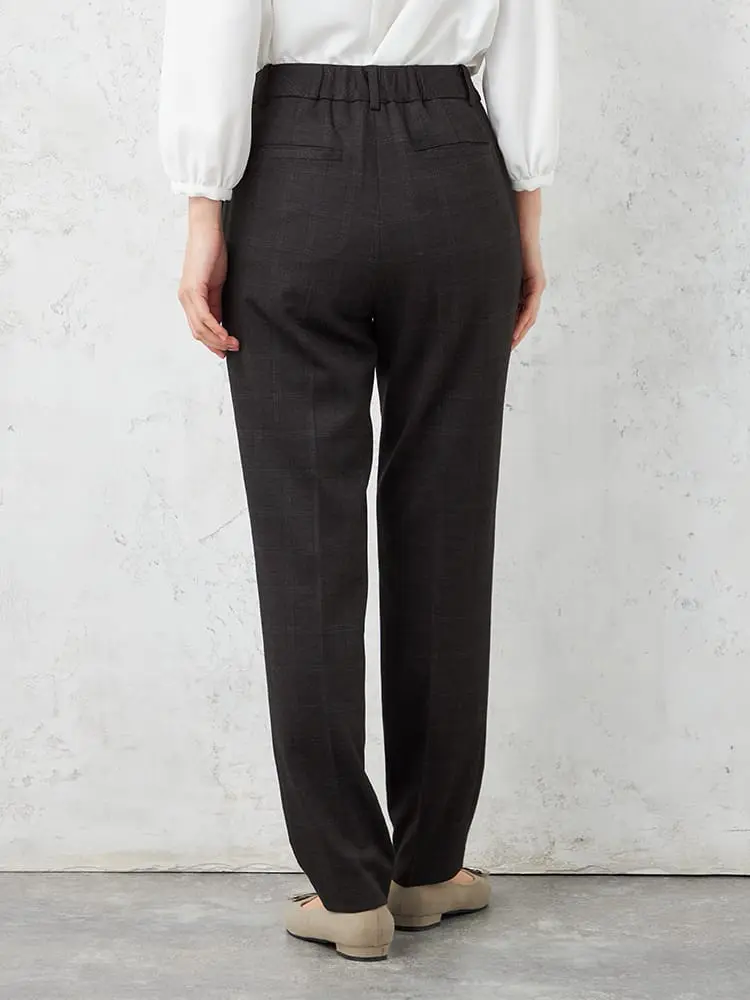 クラシカルな雰囲気があるチェック柄ノータックのパンツです。