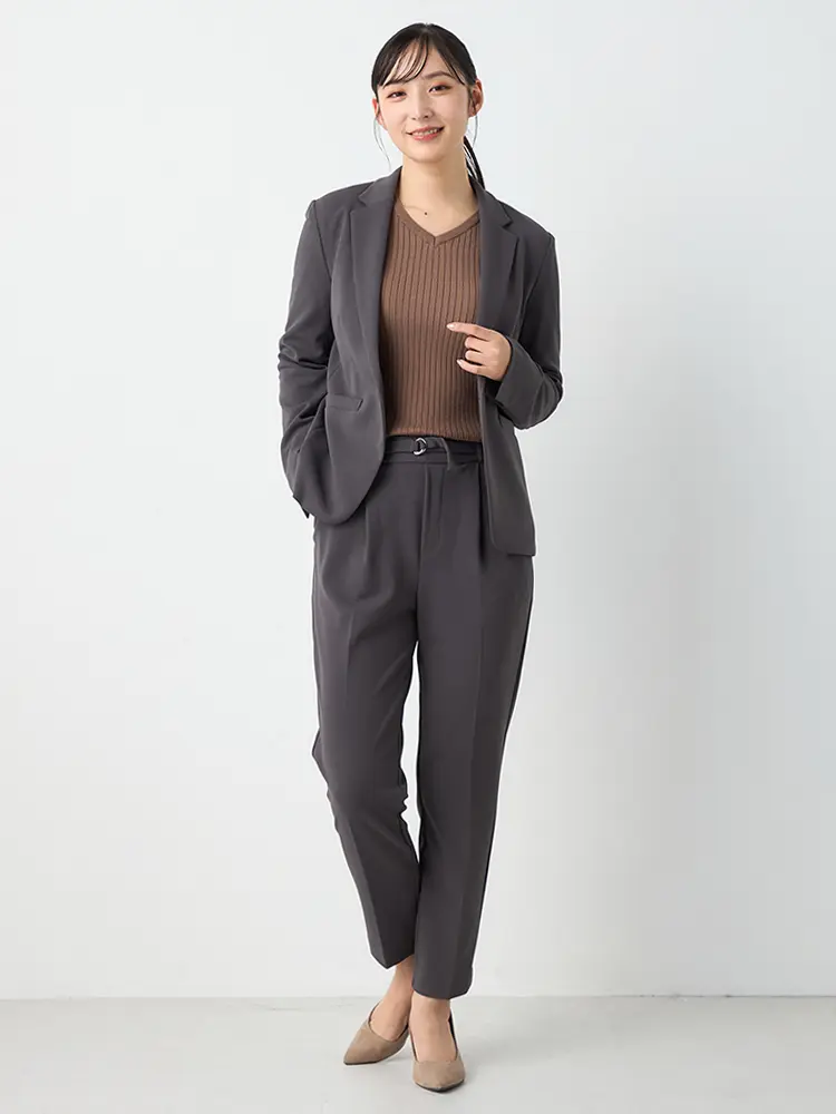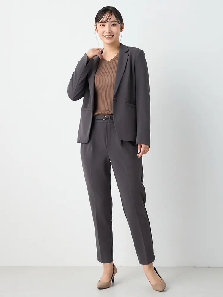 【即納】【パンツスーツ上下セット】ハイストレッチテーラード1つボタンジャケットパンツセット 【WEB限定】秋冬 【レディース】(L.グレー)